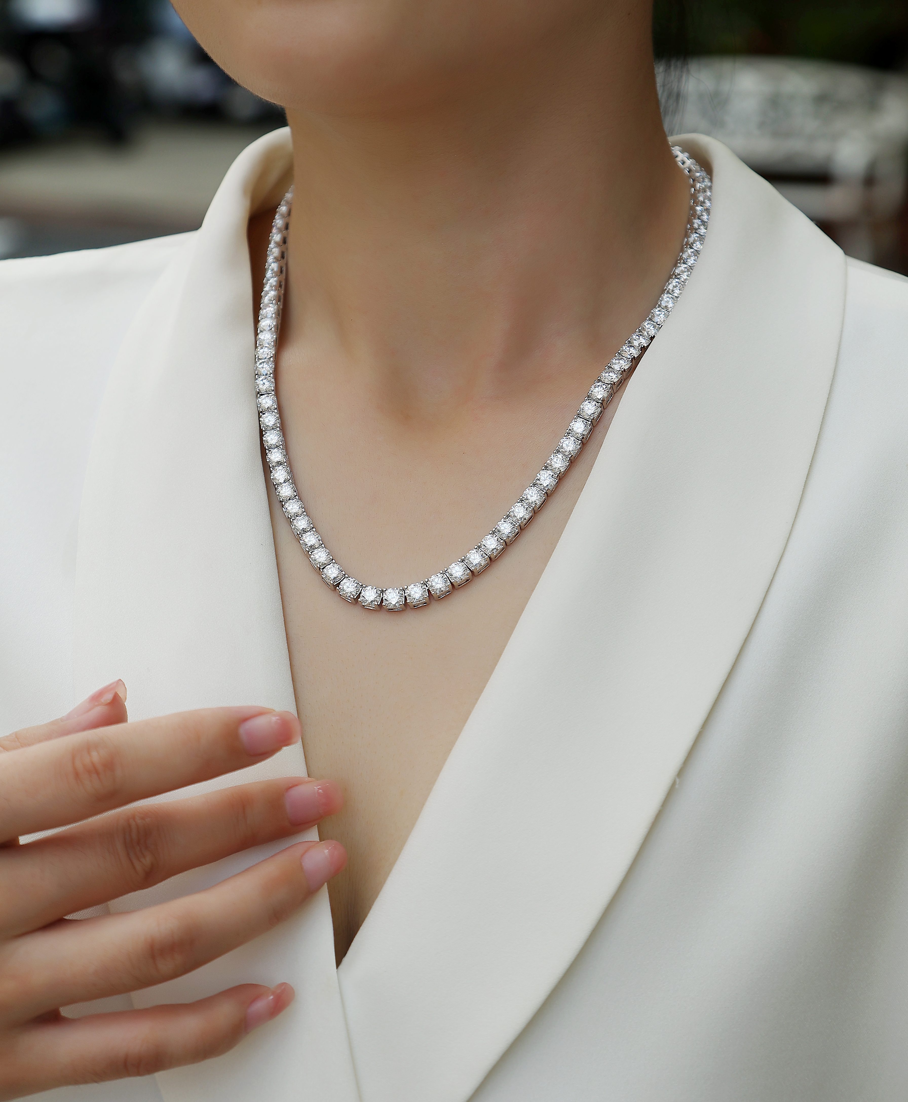 Endless Starry River - A Luxurious And Fashionable Light Luxury Jewelry Necklace Pendant Set With Top-quality Moissanite, S925 Silver-plated Platinum.