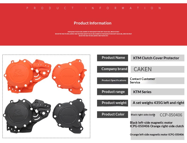 Color classification: 17-23 magnetic motor protection cover black, 17-23 clutch protection cover black, 17-23 magnetic motor protection cover orange, 17-23 clutch protection orange, 17-23 engine protection left and right sets of orange, 17-23 engine protection left and right sets of black, 24 left magnetic motor protection cover orange, 24 right clutch water pump protection cover orange, 24 left magnetic motor protection cover black, 24 right clutch water pump protection cover black, 24 engine protection left and right sets of orange, 24 engine protection left and right sets of black
