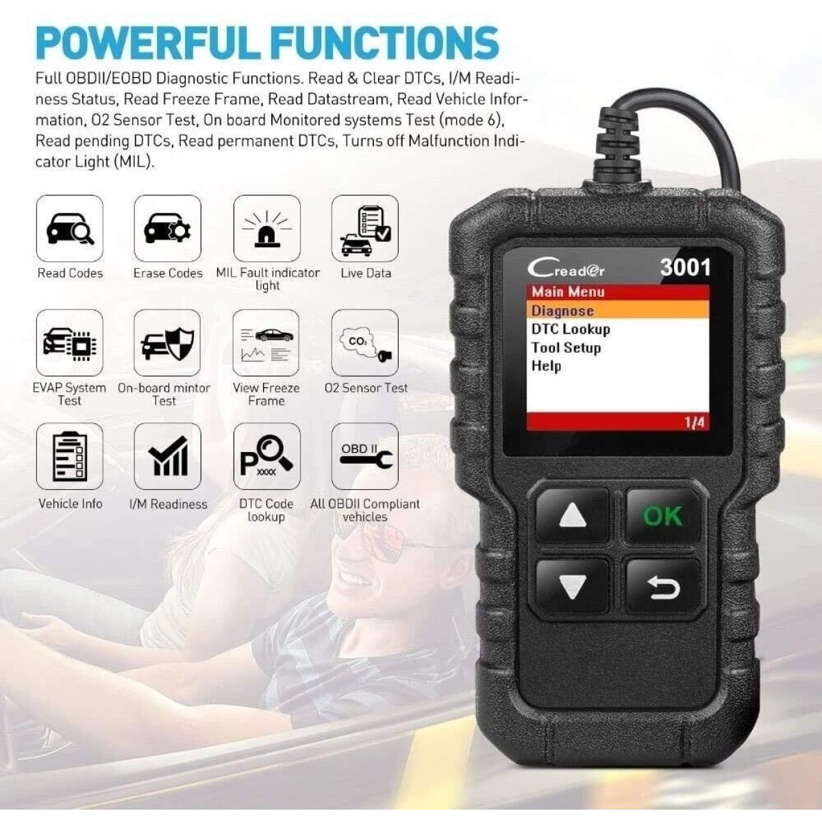 Features: Vehicle Diagnoses Doctor:YA-101 is an upgraded version of basic obd2 scanners with feature complete support of all 10 modes of obd2; including reading and erasure of current codes, O2 Sensor Tests, On-Board Monitor Test (Mode 6), EVAP System Test (Mode 8), I/M Readiness, Vehicle Info, etc,.Help you pass the Smog check! View Live Data & DTCs Lookup:View Freeze Frame/Live Data streams, Live O2 monitoring, Misfire, Engine Coolant Temperature and Engine RPM Data; view real-time PID data from ECM; built-in DTC lookup library with definitions. Garage Necessity:Plug and play function,easy to use. Add Battery Test Function to view of Battery Status; color display. PLEASE NOTE: This tool only works on 12V cars, not NOT WORK FOR 24V truck.