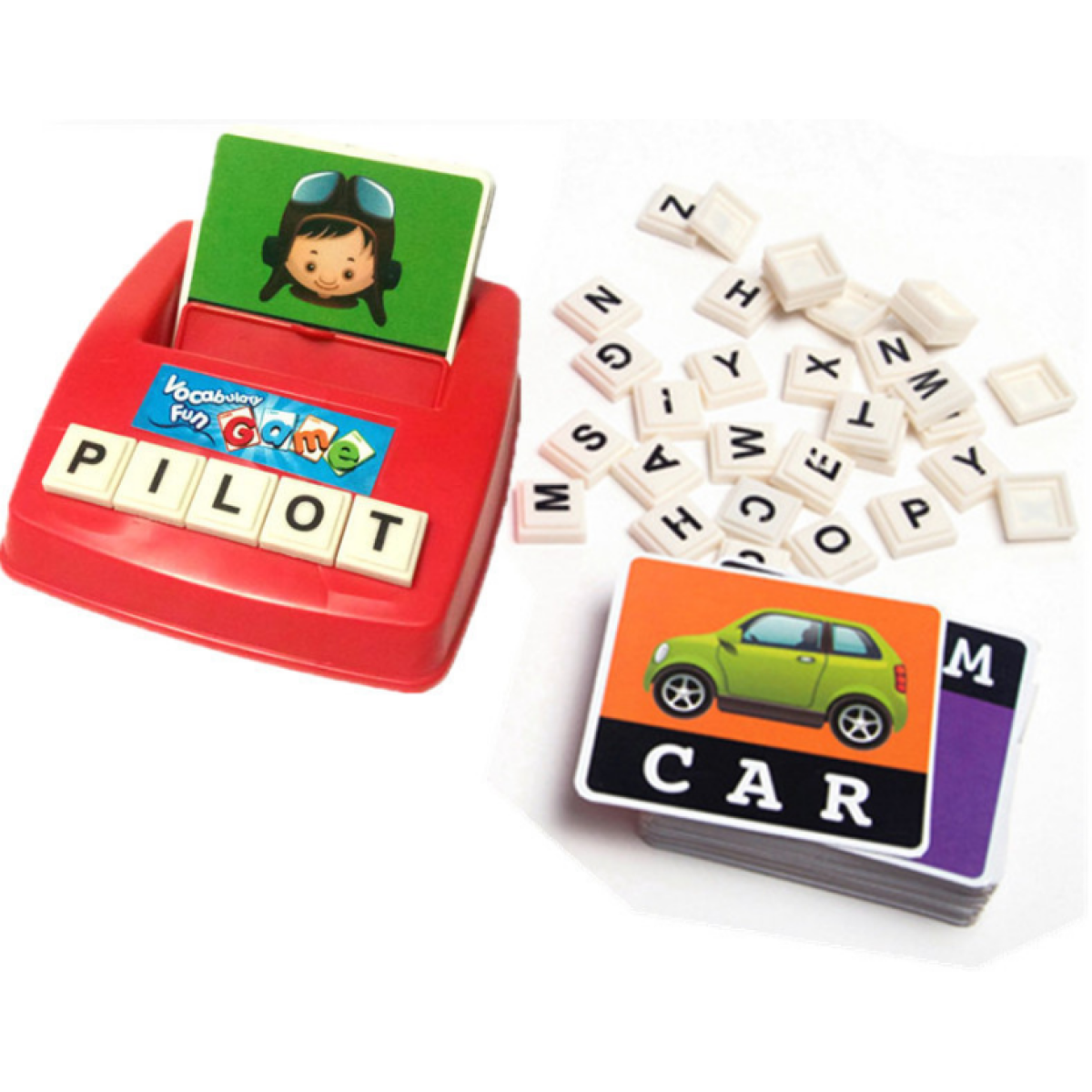 Material: plastic + paper Packing size: 26.5*26.5*4.8cm Recommended age: 3 years old or older Number of players: 1-4 people Product content: host 1; 30 double-sided cards, letter 26