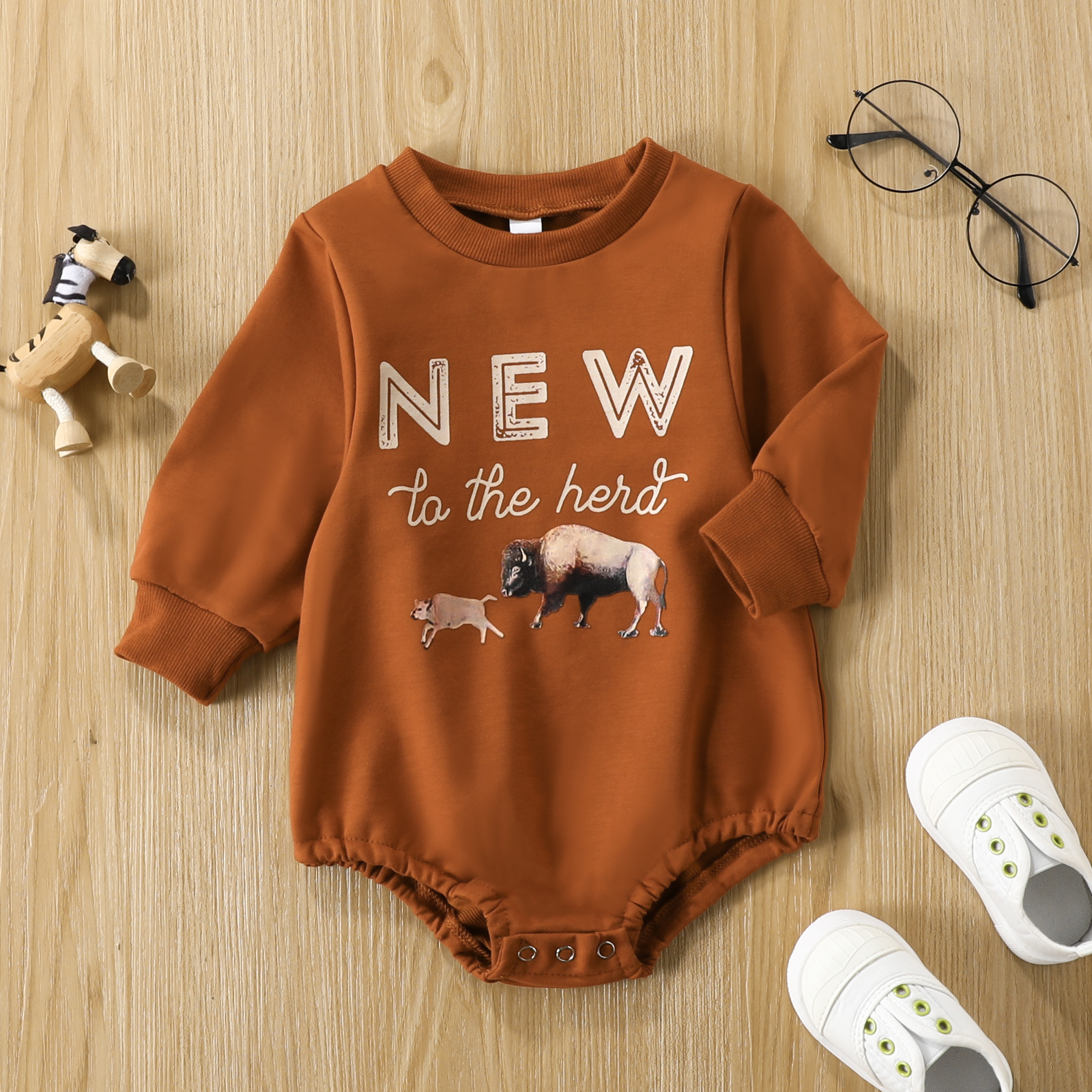 English Letter Cowhead Cotton Long Sleeve Triangle Romper