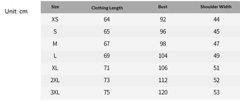 Sizes: XS, S, M, L, XL, XXL, XXXL
