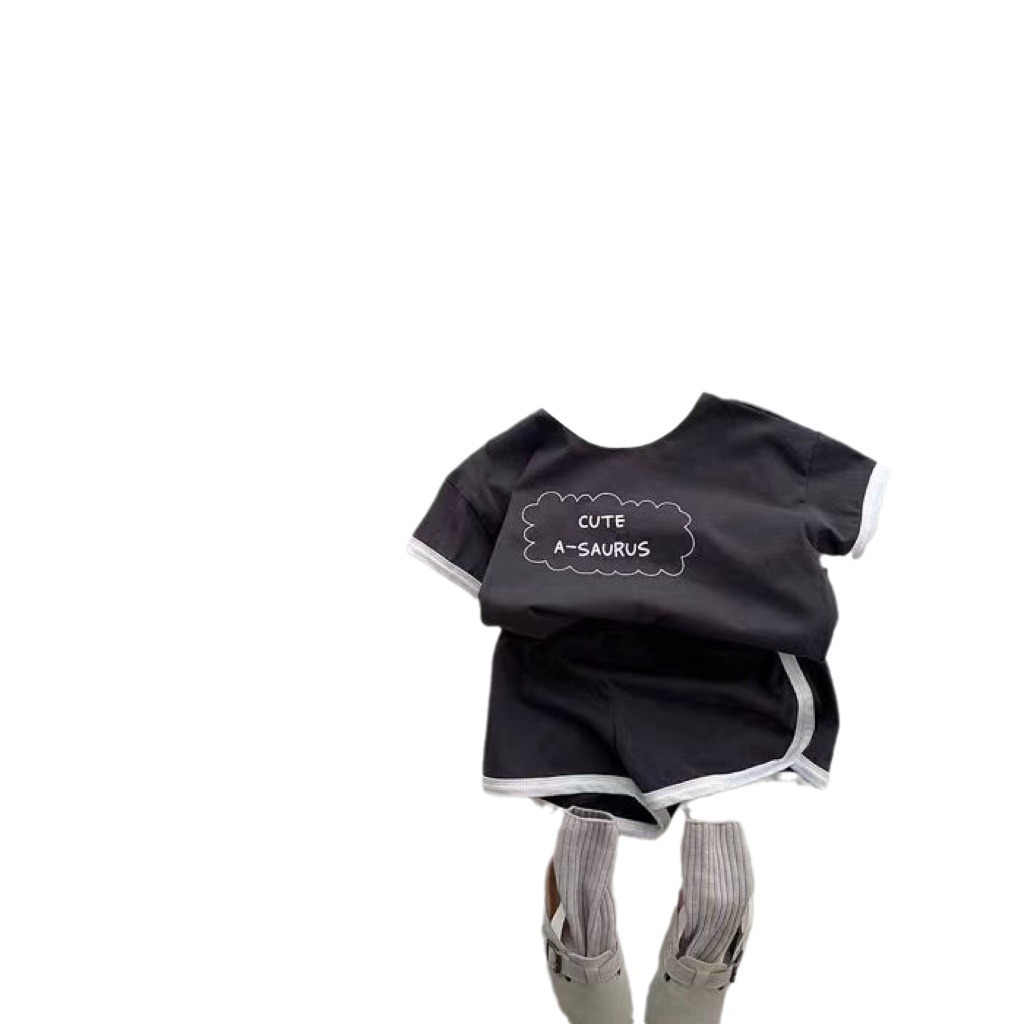 English Letters Men's And Women's Baby Clothes Short-sleeved Shorts Round Neck