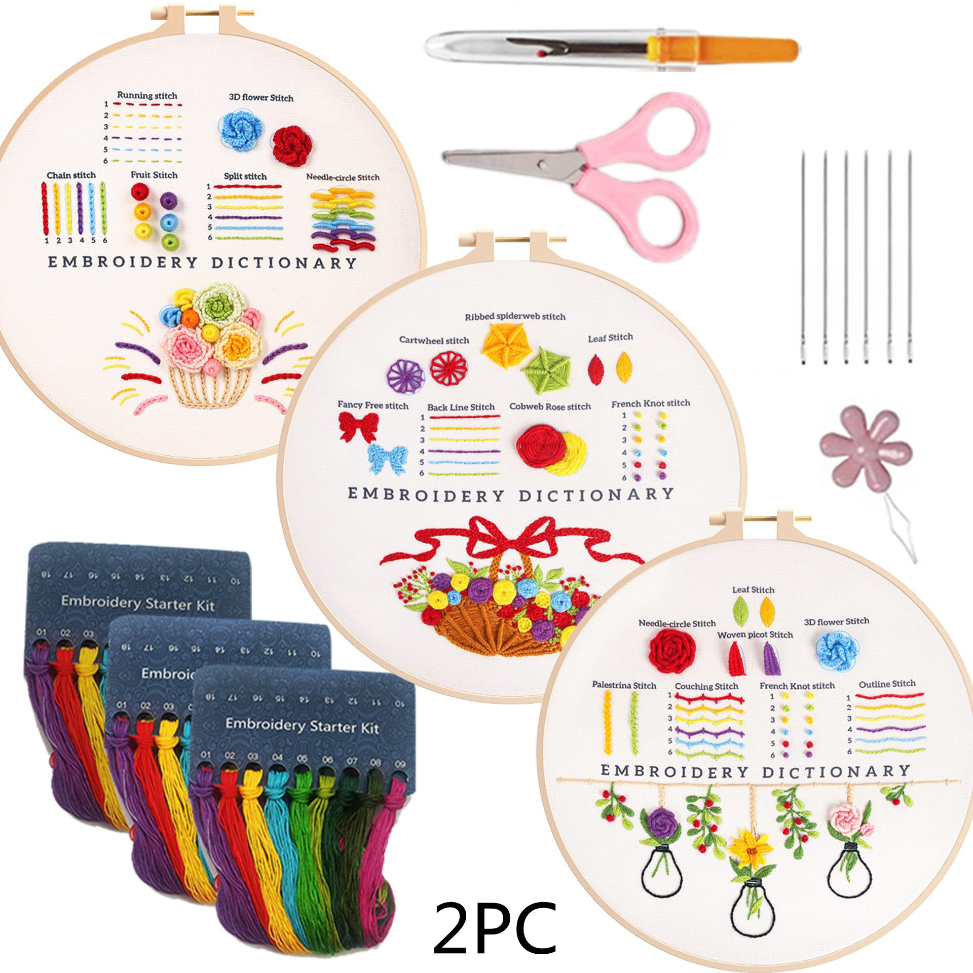 Three sets for beginners to practice small flower cats (flower 1 flower 2 flower 3) pink scissors/flower threading device/transparent thread remover(With a 20cm bamboo embroidery bandage)