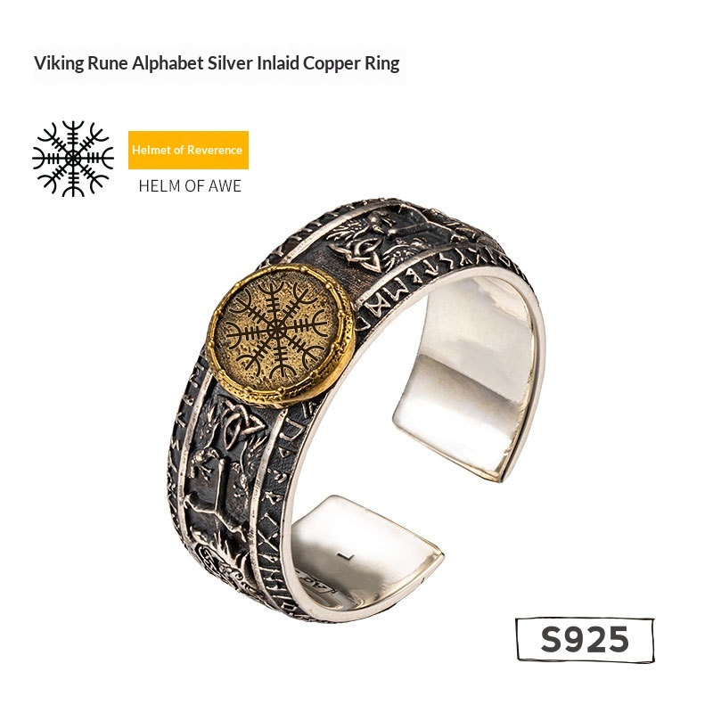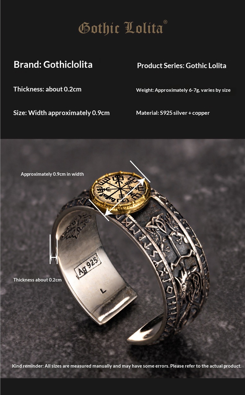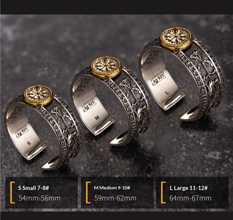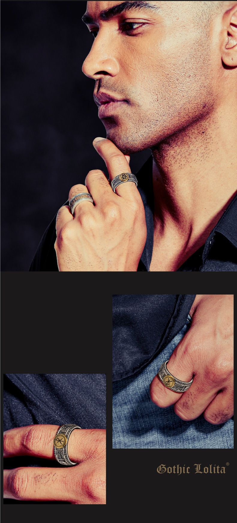Engraved Viking Silver Ring Trendy Vintage, And Full Of Personality For Men
