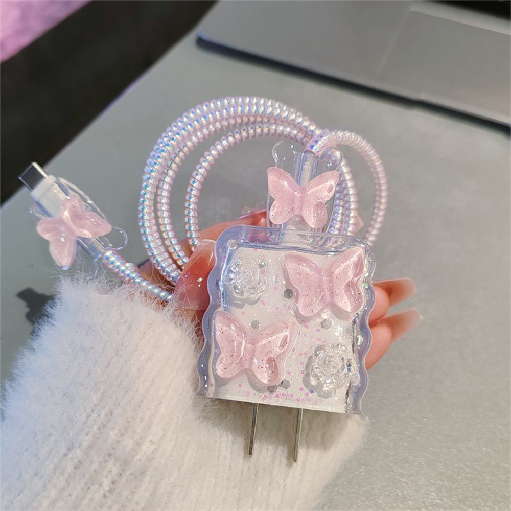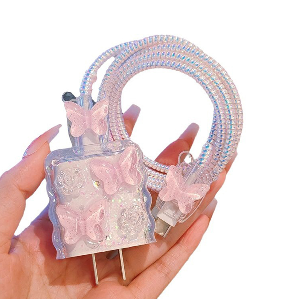 Color: Pink epoxy butterfly [five-piece set-Big Head 1-small head 2-protective rope 1.5-strap 1]]