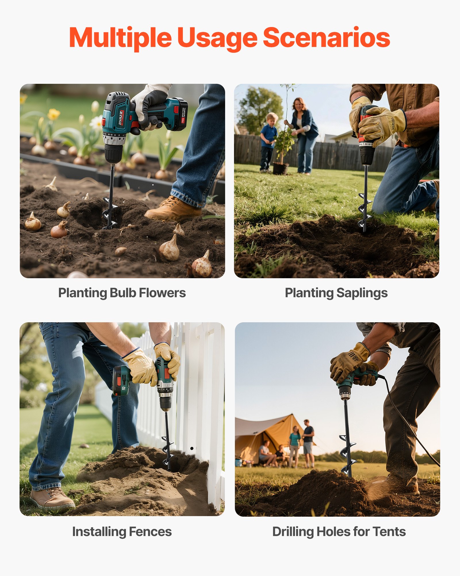 VEVOR Erdbohrer für Bohrmaschine, Ø 4 x 22 cm Pfahlbohrer, für 3/8-Zoll-Sechskant-Bohrer, Erdlochbohrer, Gartenbohrer, Lochbohraufsätze zum Graben von Gartenpfostenlöchern und Zäunen