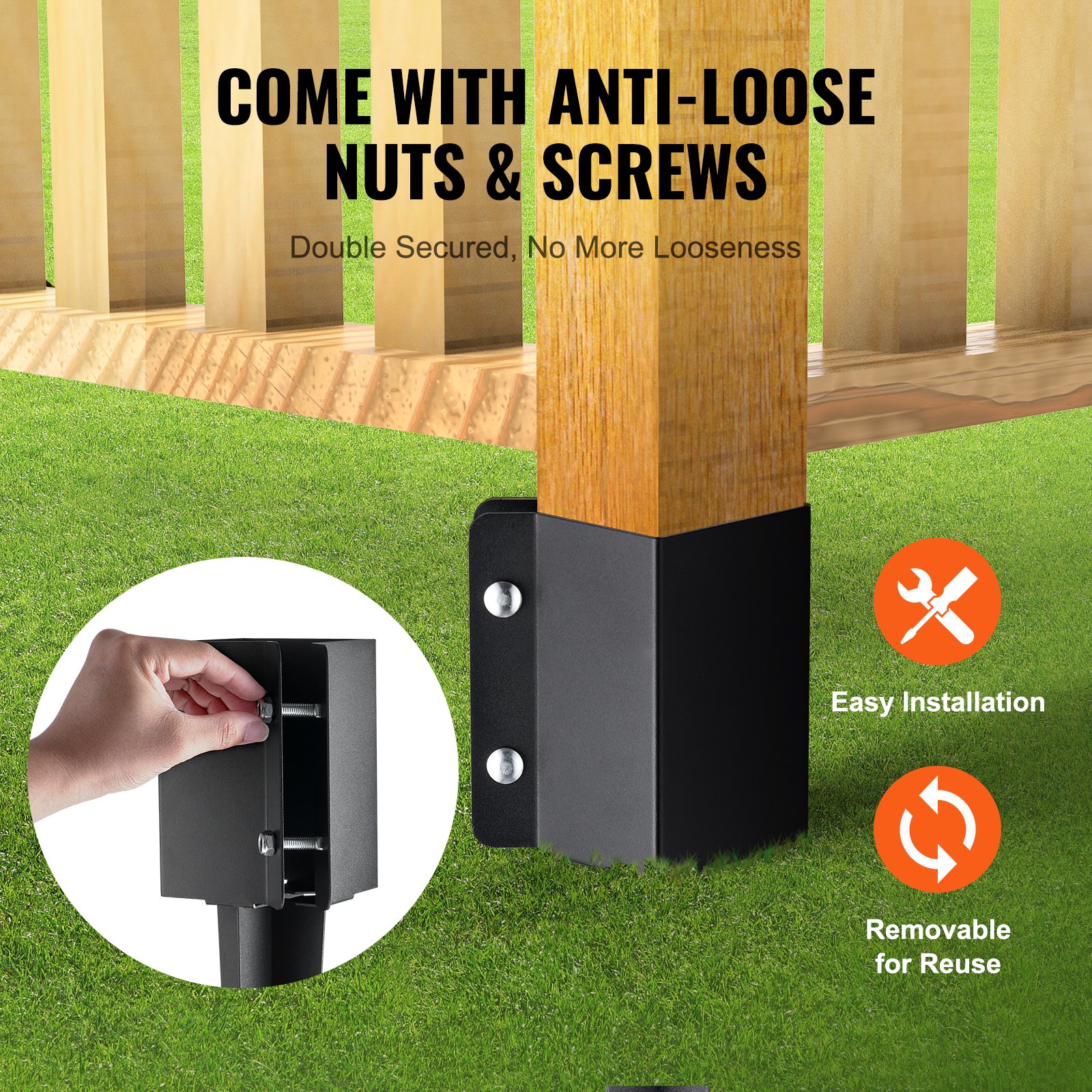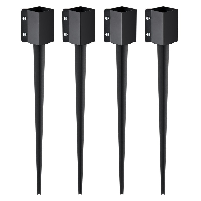 VEVOR Erdspie_ für Zaunpfosten, 4er-Pack, 113 x 113 x 914 mm Au_endurchmesser (Innendurchmesser 8,9 x 8,9 cm), Metall, schwarz pulverbeschichtet, Erdspie_ für Briefkästen, Terrassen, Gartengeländer