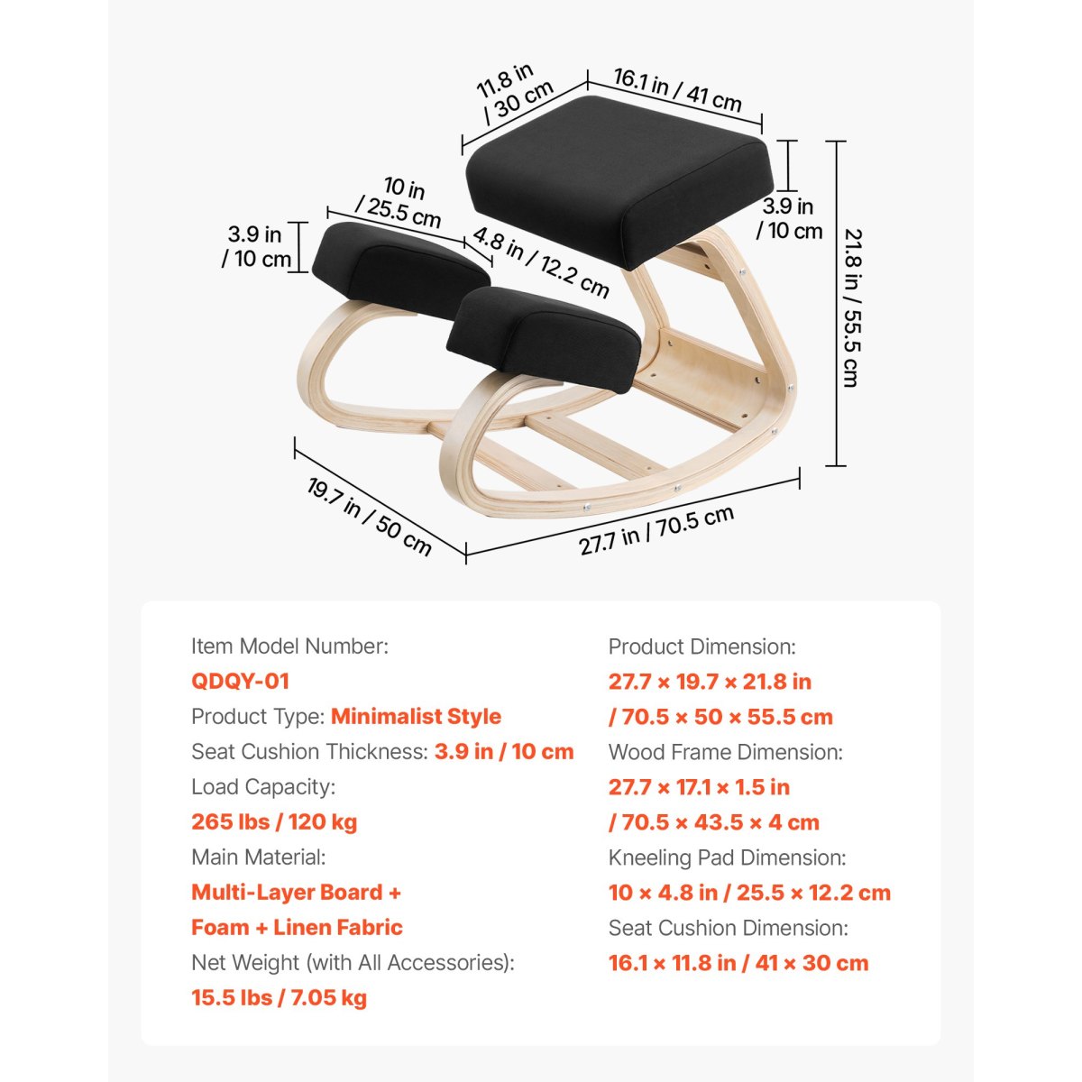 Thick Cushions: Seat and kneeling pads of the kneeling office chair use foam to support hips and knees for lasting comfort, help hold their shape over time, and the linen fabric provides airflow and heat release for a cooler, drier sitting feel