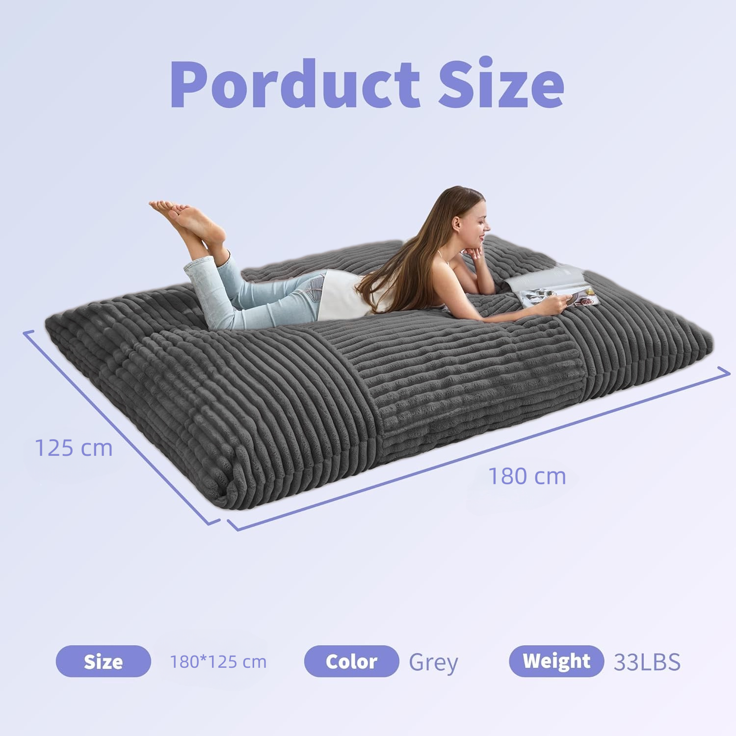 • Versatile Size for All AgesGenerously sized at 75.6" × 55.1", it easily accommodates adults and children alike. Use it as a floor sofa, a lounging bed, or a playful space for relaxation, reading, or movie nights.