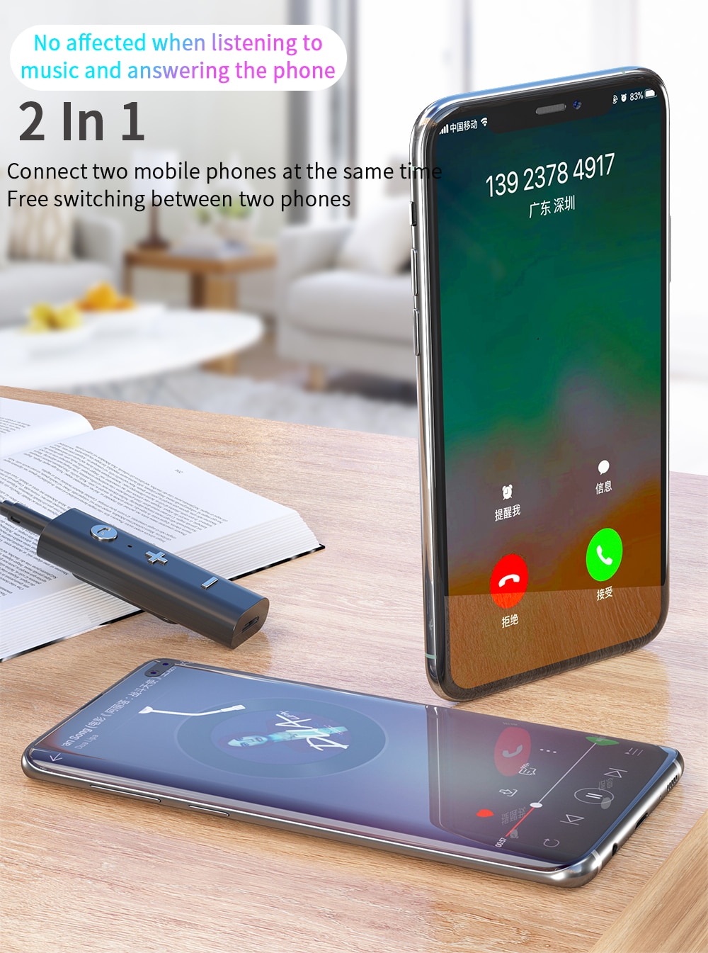 5. It can connect 2 mobile phones at the same time, and switch between the two mobile phones freely