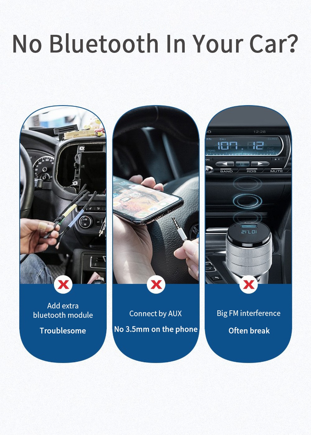 4. The Bluetooth receiver can also connect the audio adapter to the car AUX interface to connect it to the car audio equipment