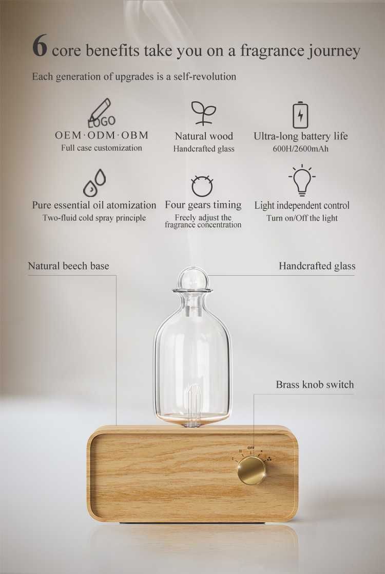Essential Oil Diffuser Waterless Operated Aromatherapy Diffuser For Home Office Wood And Glass Aroma Diffuser Scent Machine