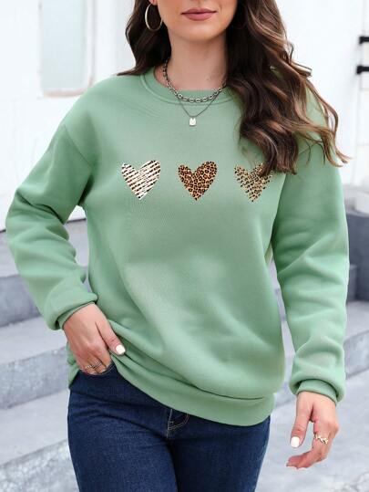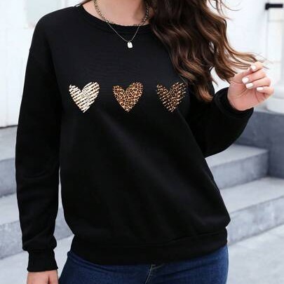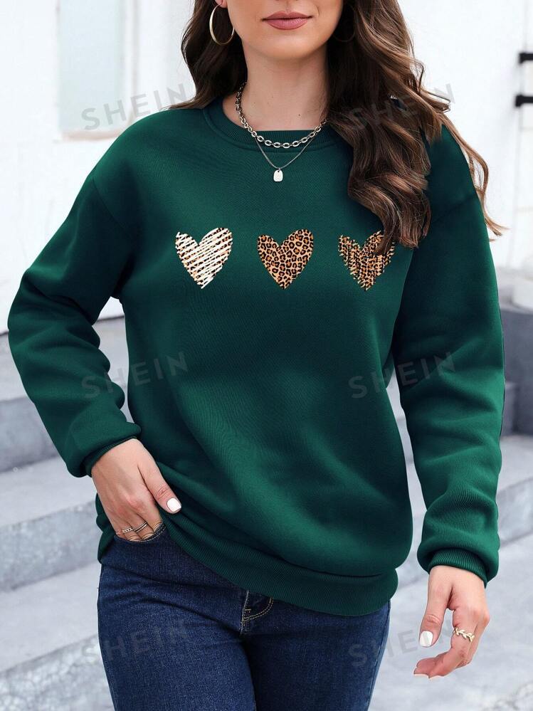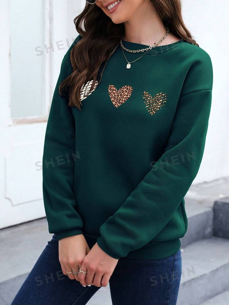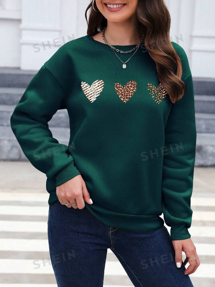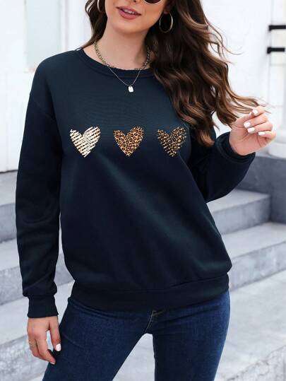 Essnce Leopard Heart Print Drop Shoulder Sweatshirt