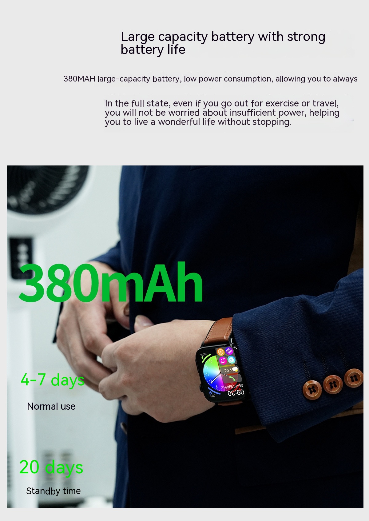 Battery life: 4-7 days of use, 20 days of standby
