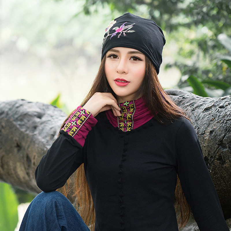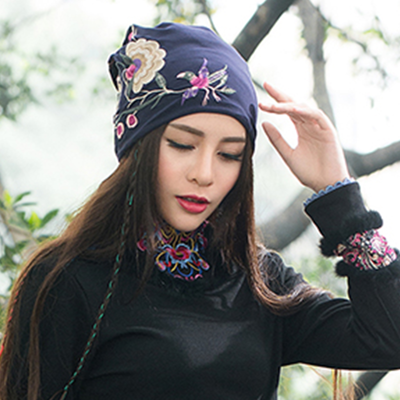 Product Details:Applicable gender: femaleMaterial: WoolPattern: FloralColor: blue, blackSize: one sizePackage Contents:Baotou cap X1