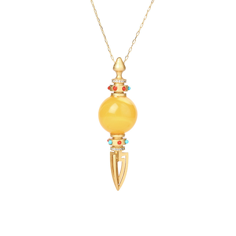 Ethnic Style Ancient Style Gold-plated Inlaid Imitation Old Honey Round Beads Vajra Men's And Women's Pendant Necklace