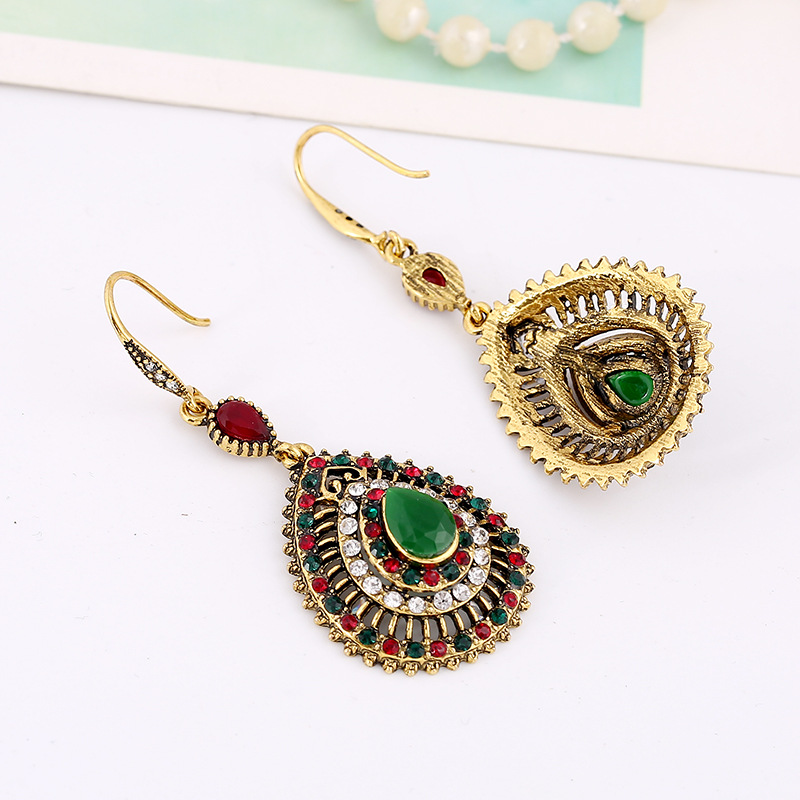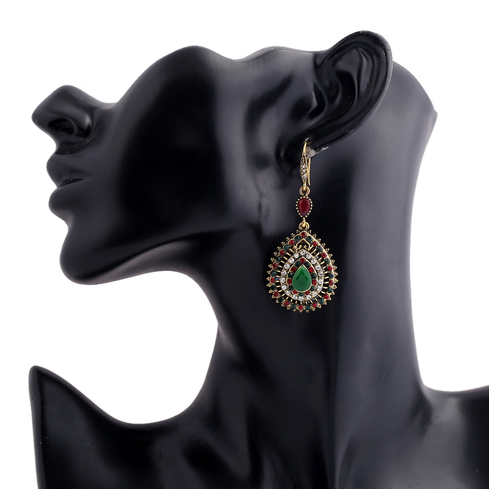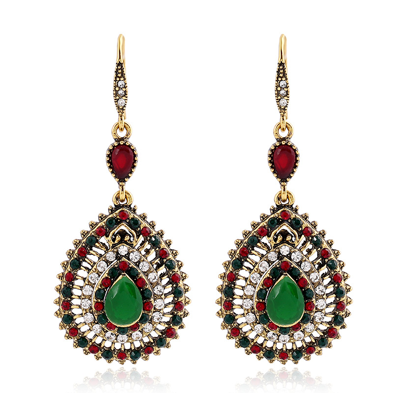 Product information:Treatment Process: Diamond Type: earrings Color: green, red and green Material: Alloy Shape: water drop