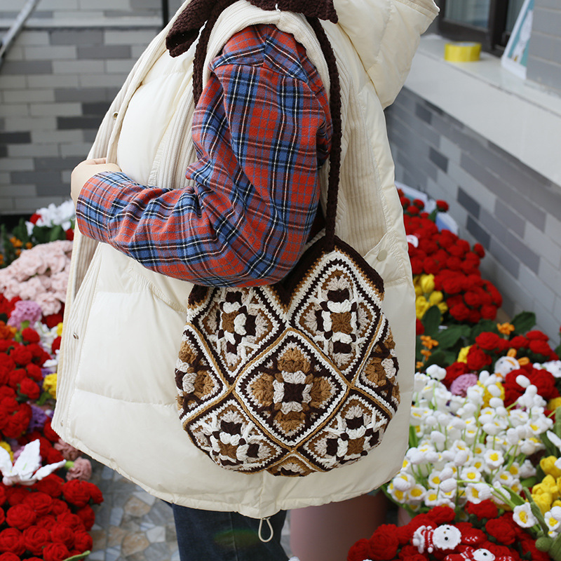 Color: brown shoulder bag, brown and blue shoulder bag