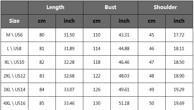 2. Please check the size chart carefully before you buy the item, if you don't know how to choose size, please contact our customer service.
