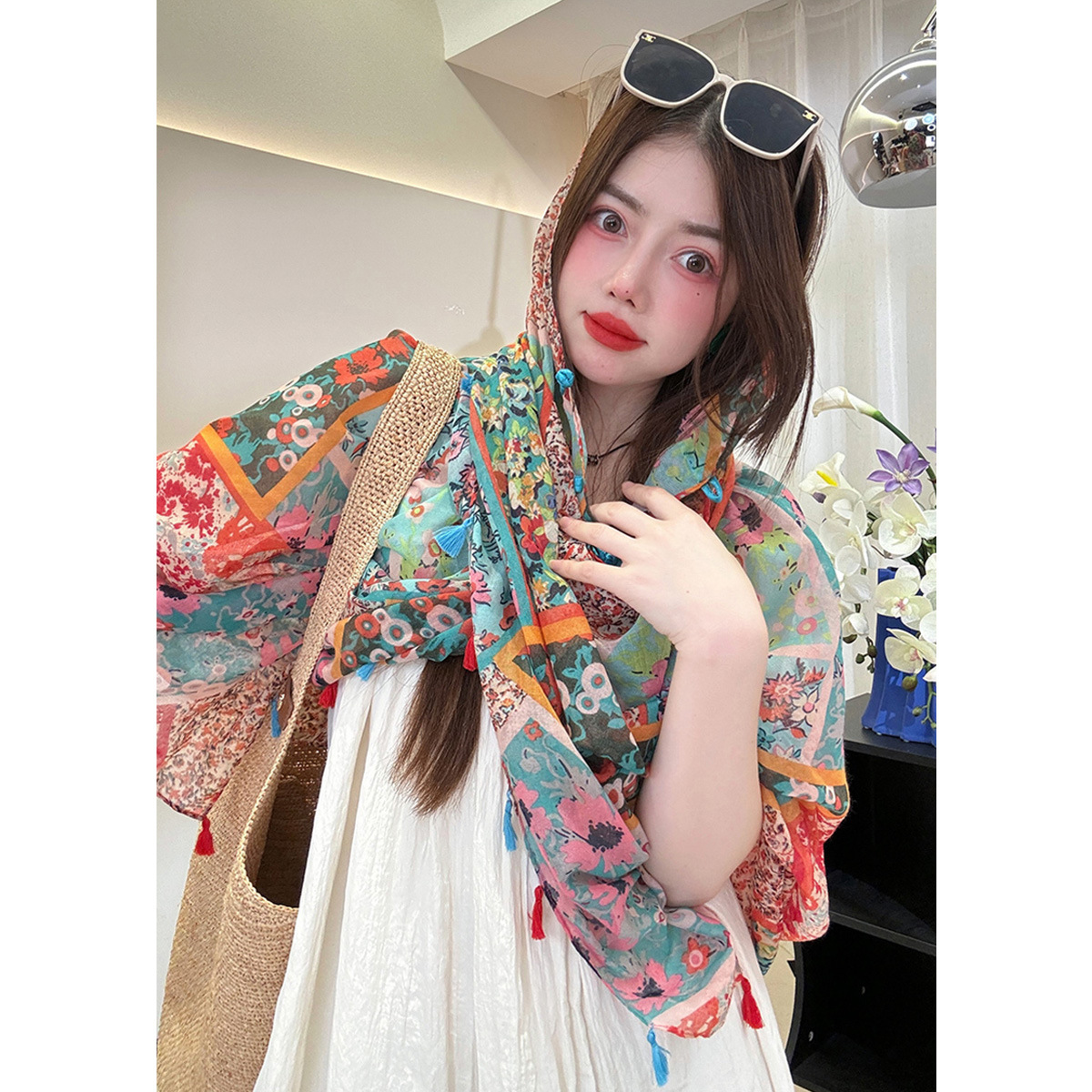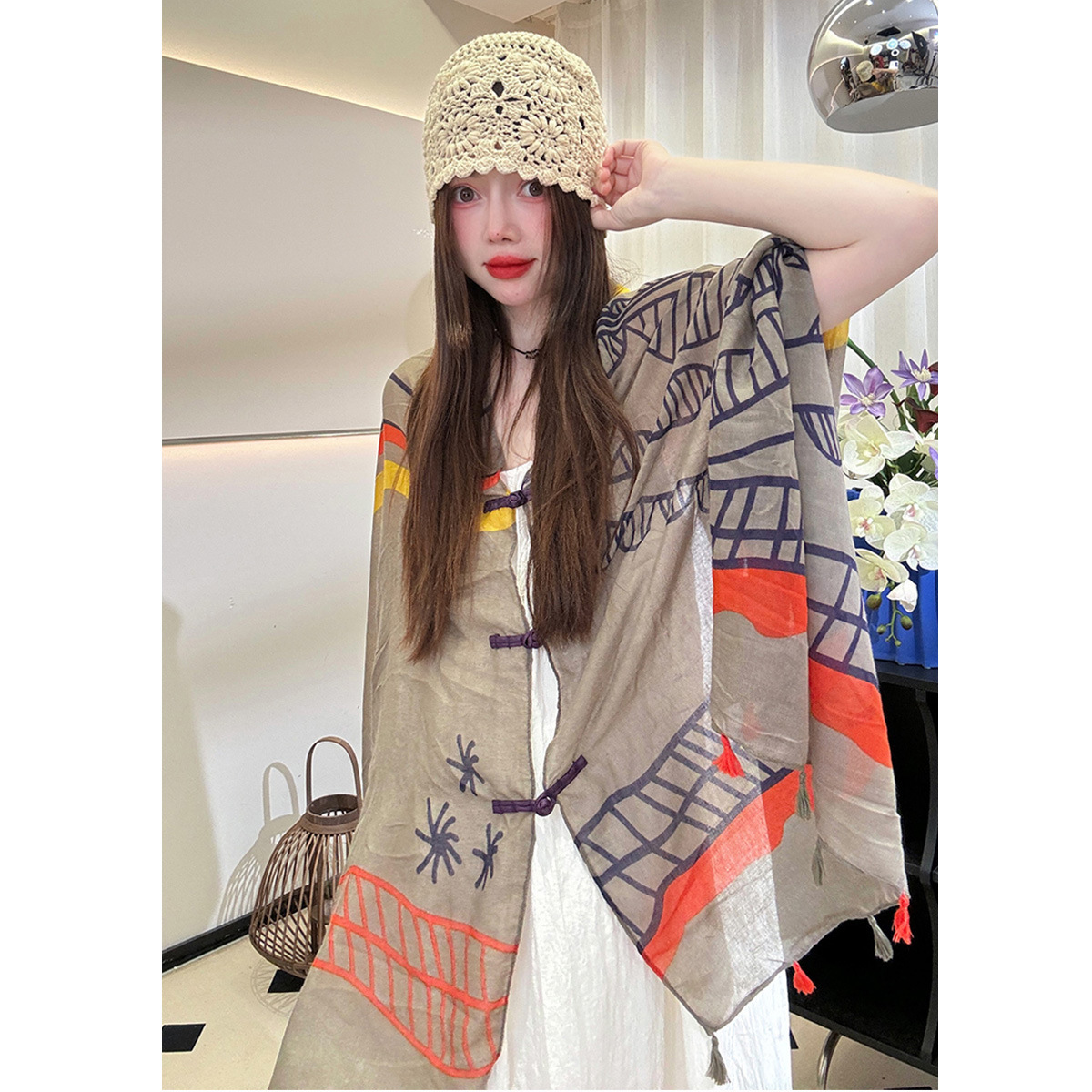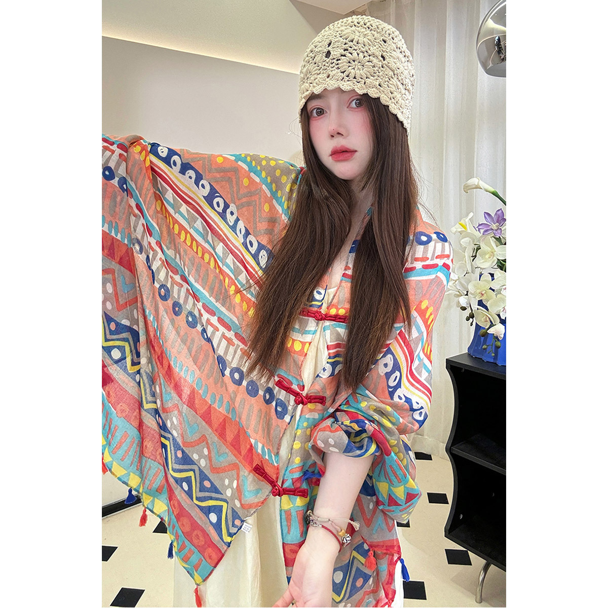 Color: ethnic style Chinese frog shawl-Tyland, ethnic style Chinese frog shawl-Kaleidoscope, ethnic style Chinese frog shawl-graffiti, ethnic style Chinese frog shawl-Tanggula, ethnic style Chinese frog shawl-colorful plaid, ethnic style Chinese frog shawl-Hoh Xil, ethnic style Chinese frog shawl-gray white polka dot, ethnic style Chinese frog shawl-red, ethnic style Chinese frog shawl-purplish blue cashew, ethnic style Chinese frog shawl-colorful