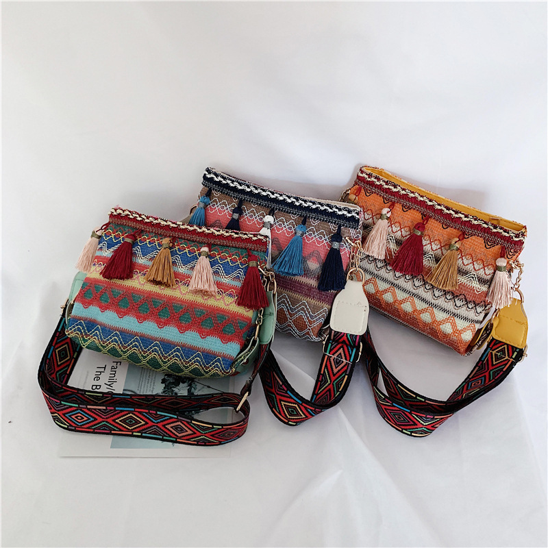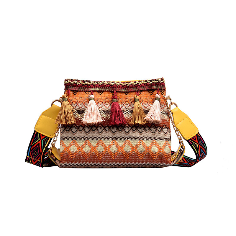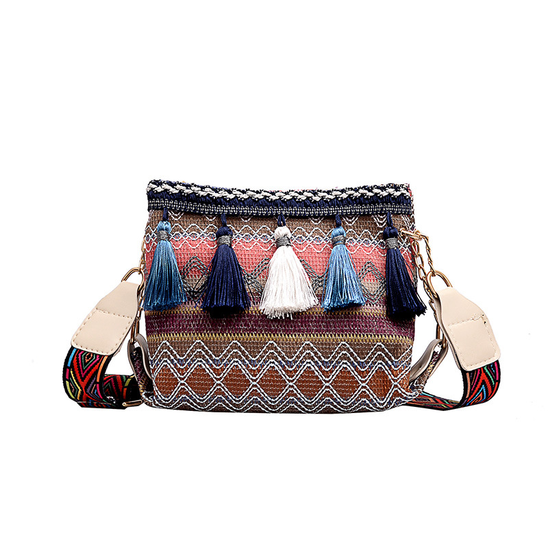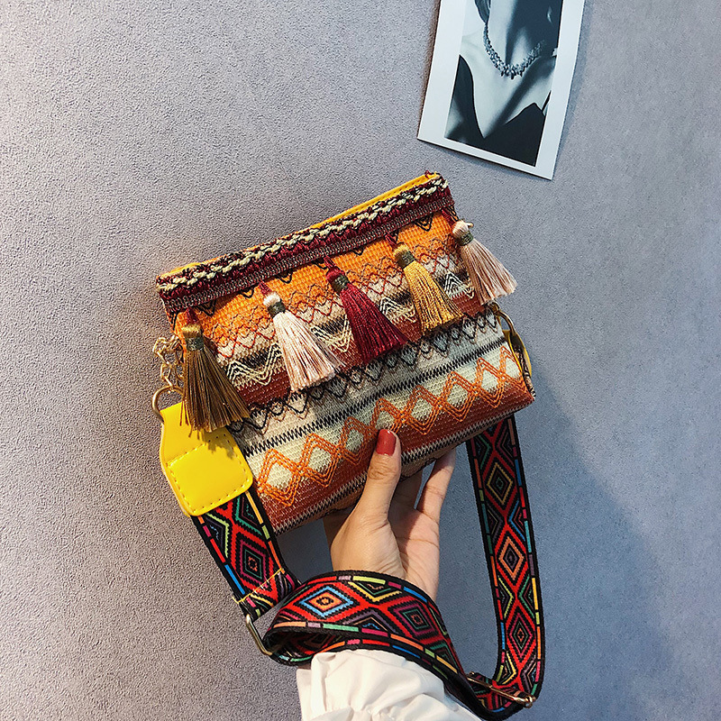 Ethnic Wide Shoulder Strap Fringed Crossbody Bag