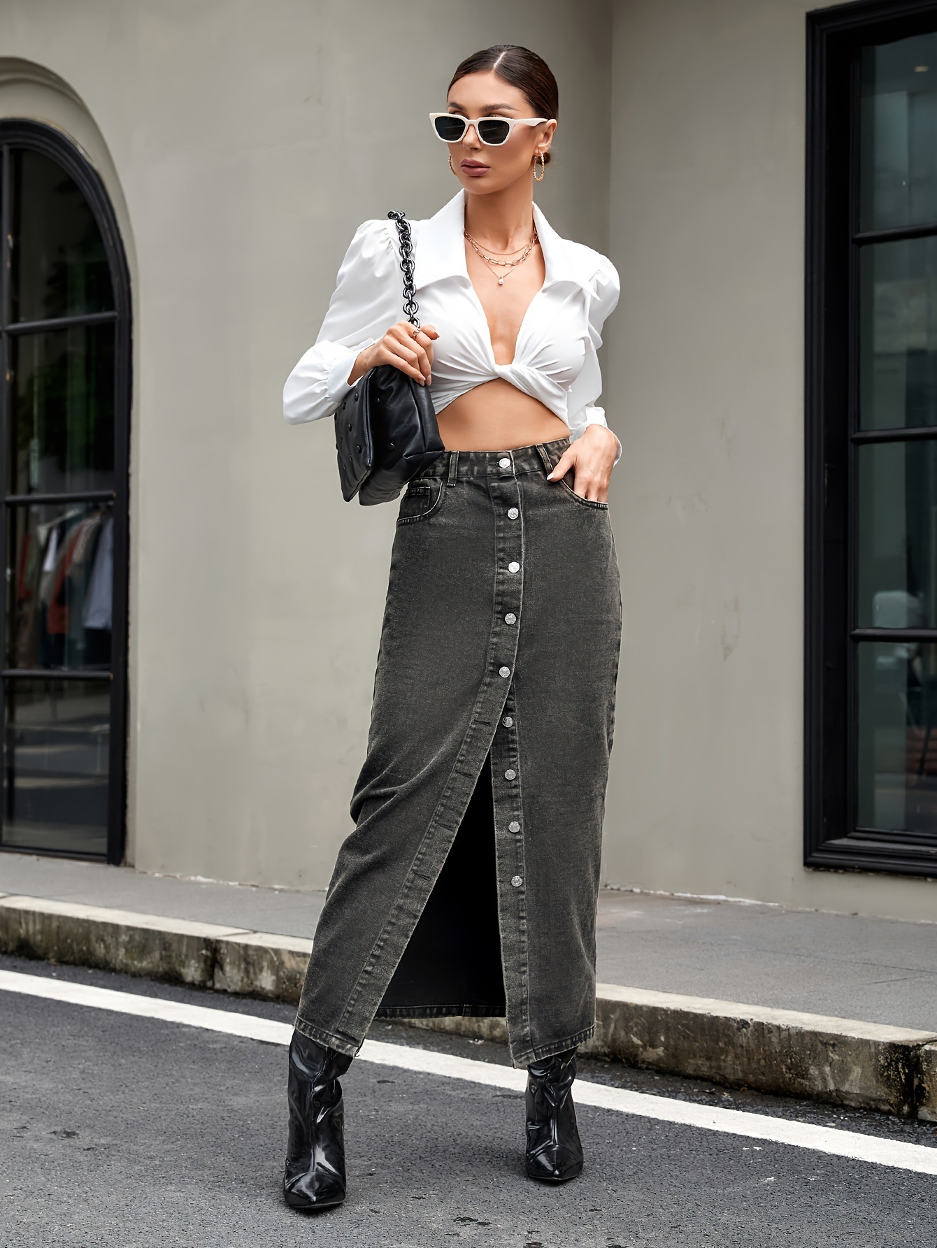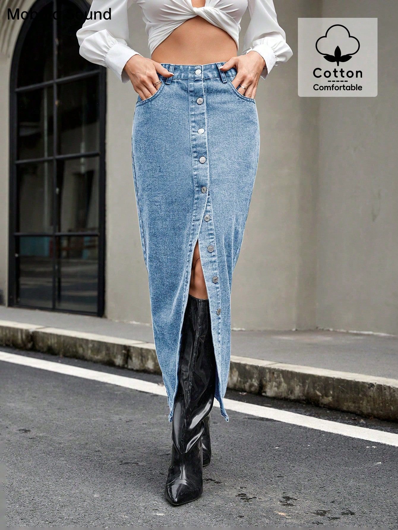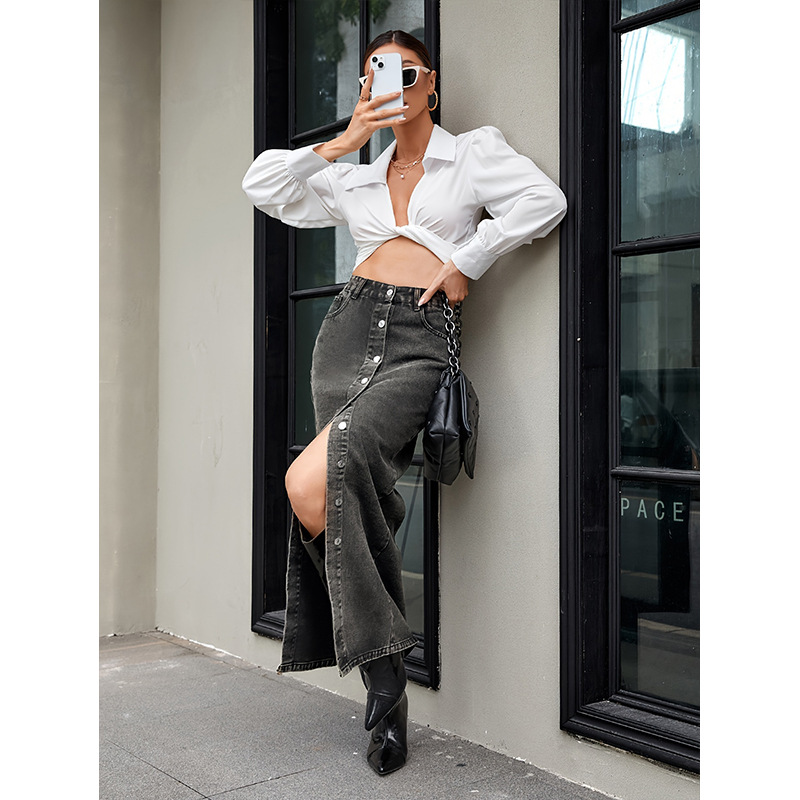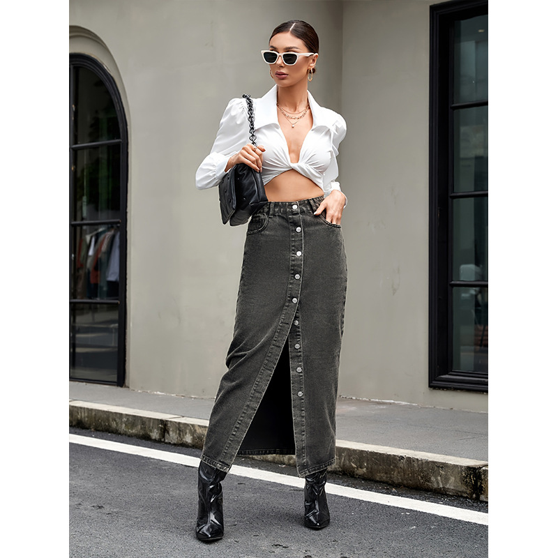 Euro-American Instagram-style Retro Trendy Multi-button Denim Skirt