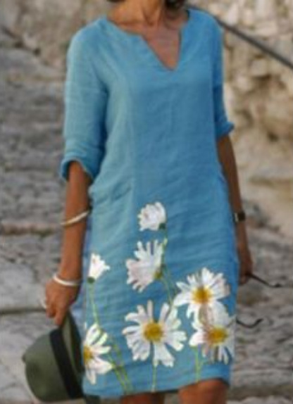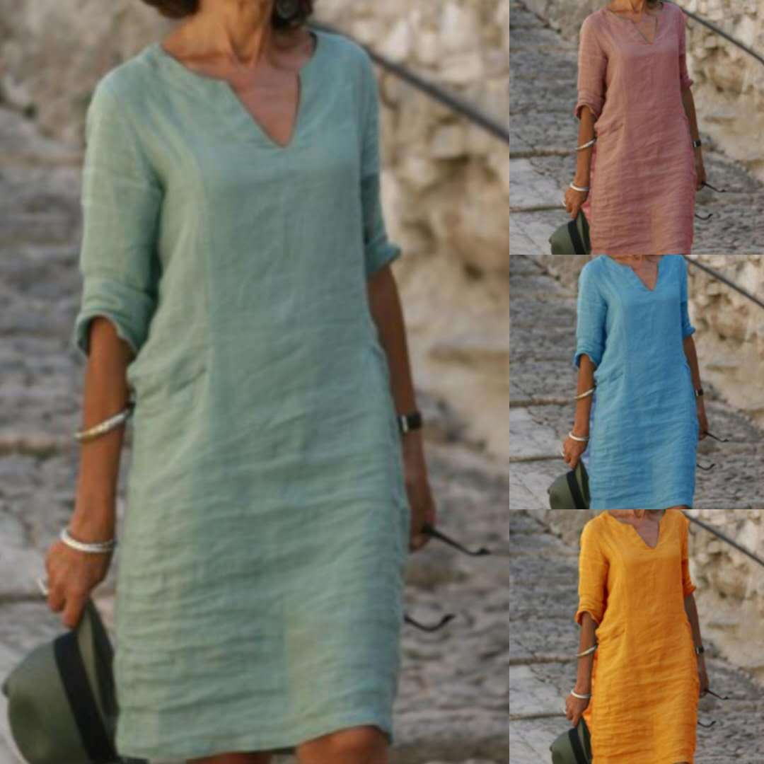 Europe And America Autumn Solid Color V-neck Medium Length Dress