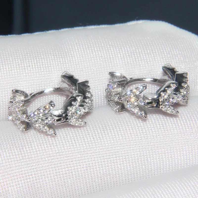 Europe and the United States big s925 sterling silver earrings ladies gold silver crystal diamonds bay leaf ear ring temperament fashion tide