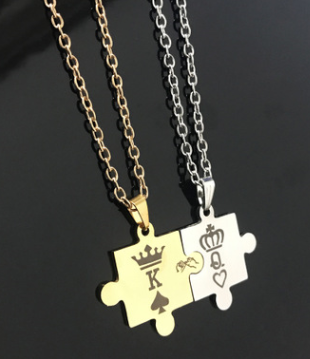 Europe and the United States Europe and the United States bursts decorated with stainless steel jewelry couple necklace king queen crown pendant accessories