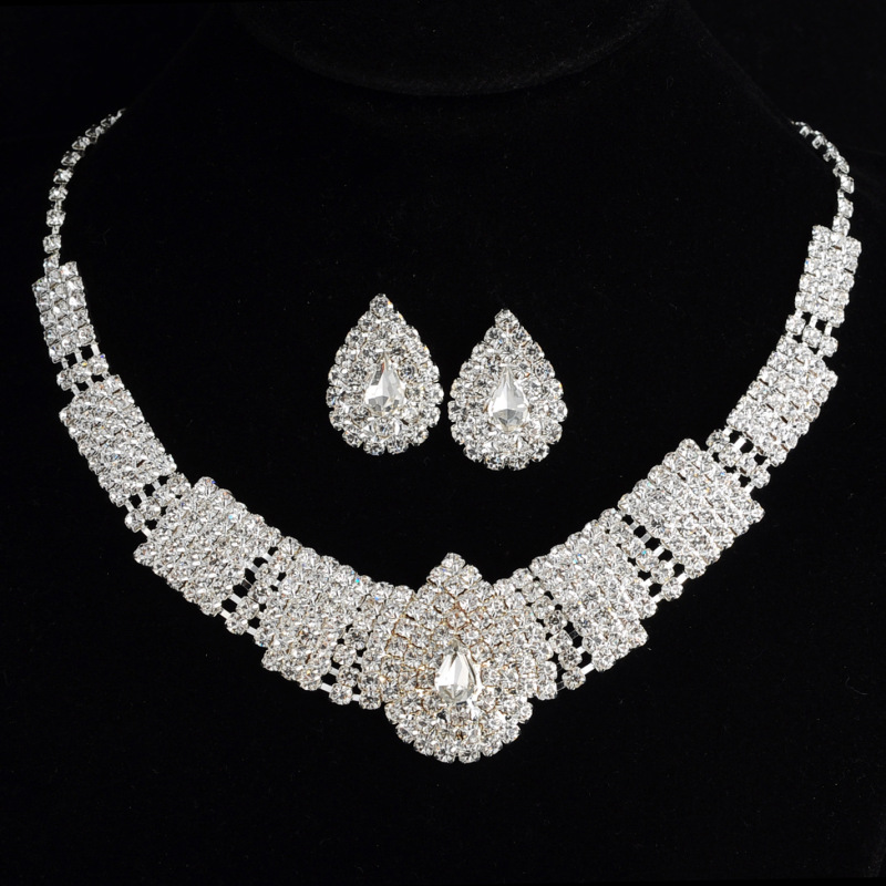 Cross Border E-commerce, Europe And The United States Exaggerated Full Drill Bridal Suite Necklace + Earrings, Wedding Jewelry Accessories