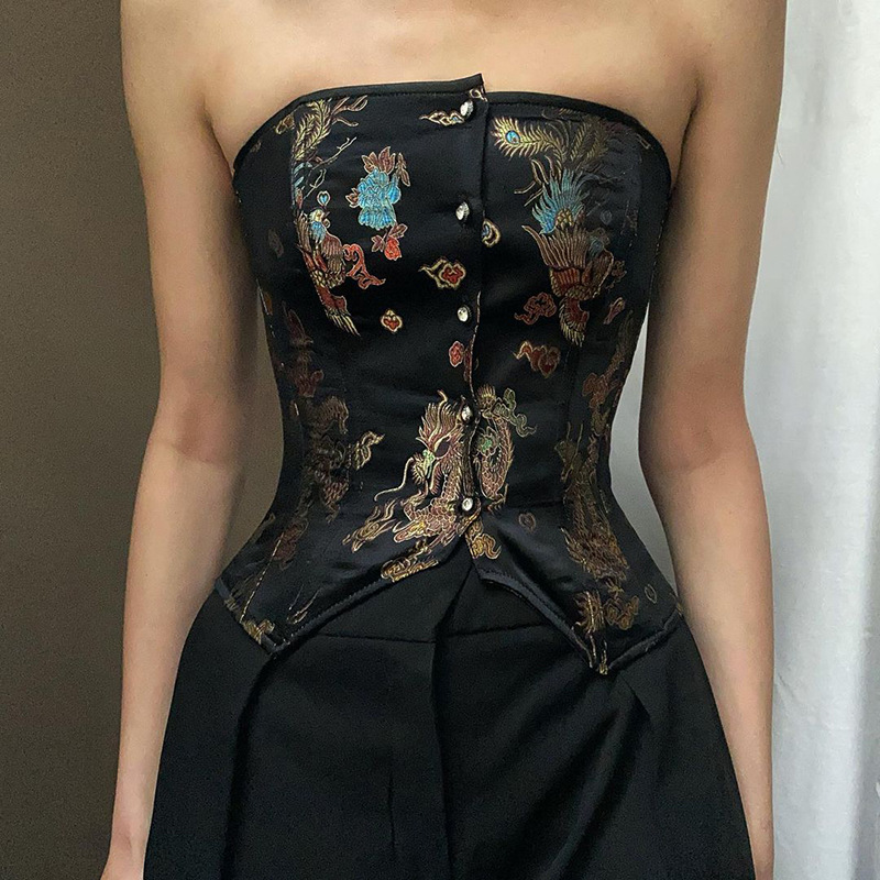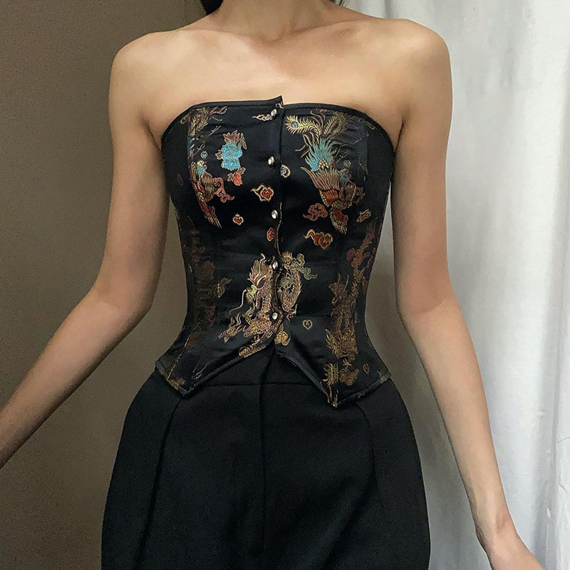 Europe And The United States New Retro Jacquard Bodice Tube Top
