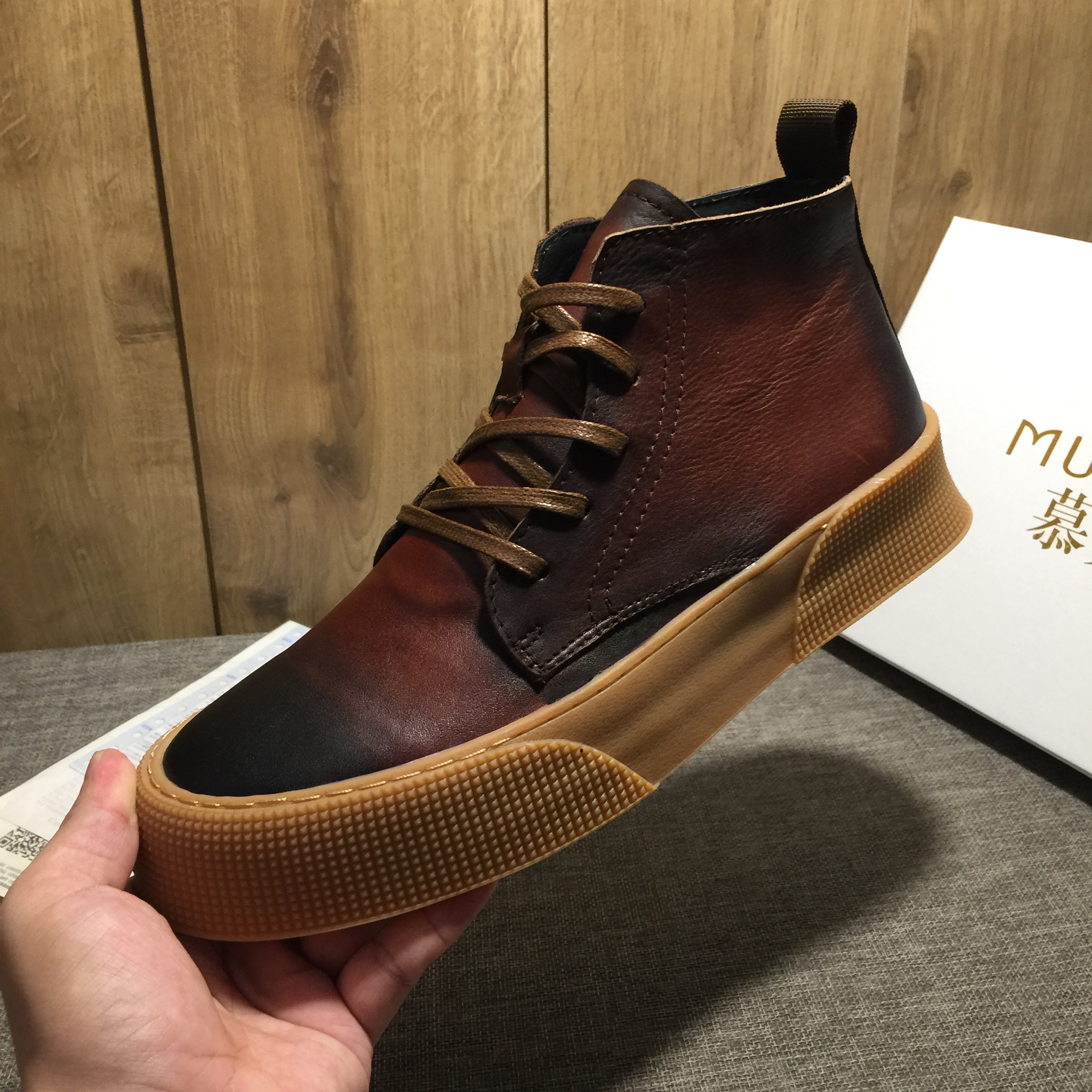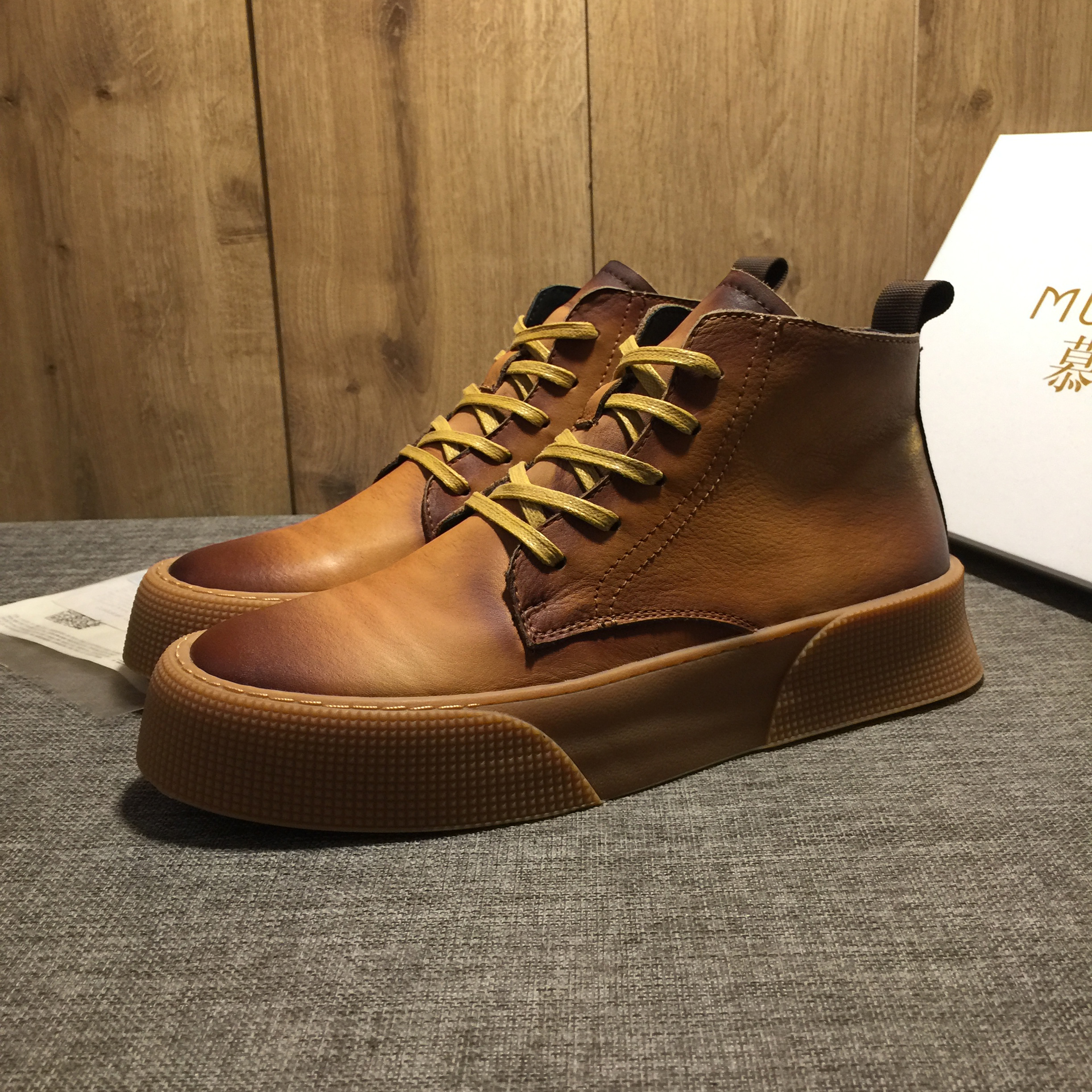 Style: casual high-top leather shoes