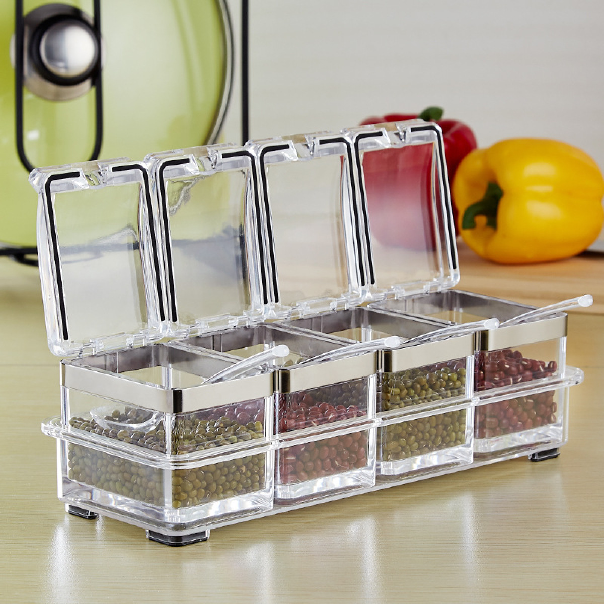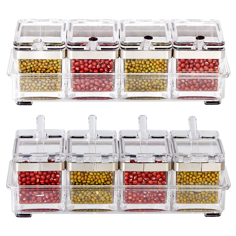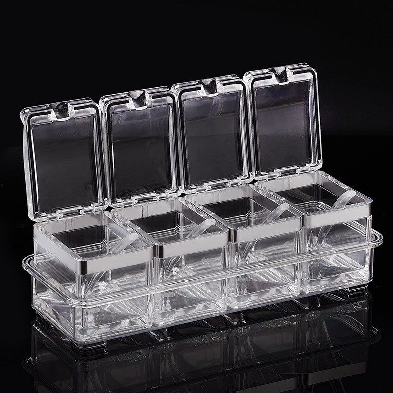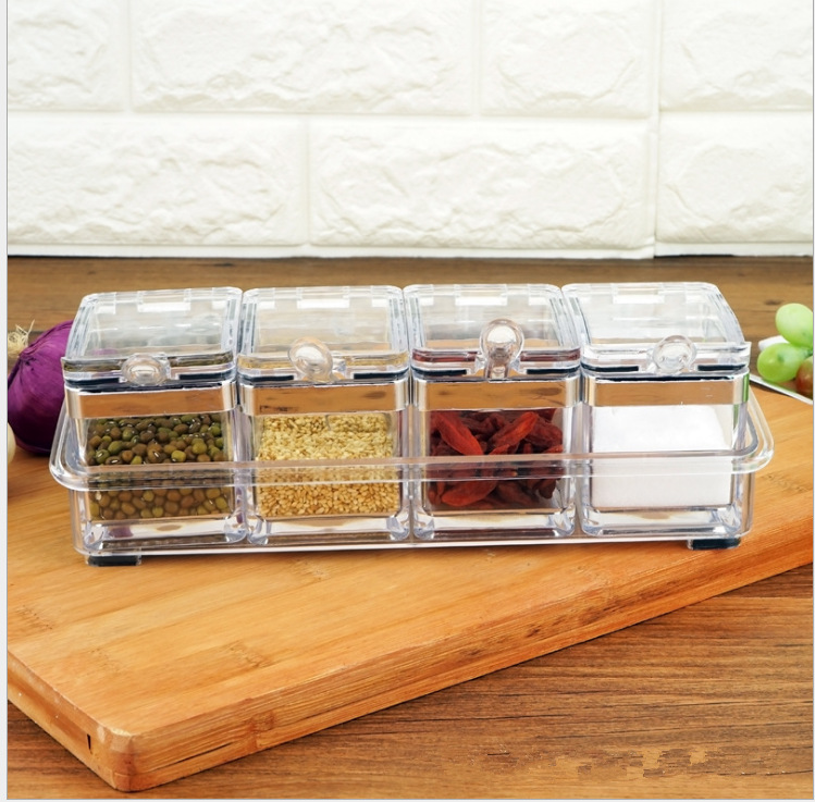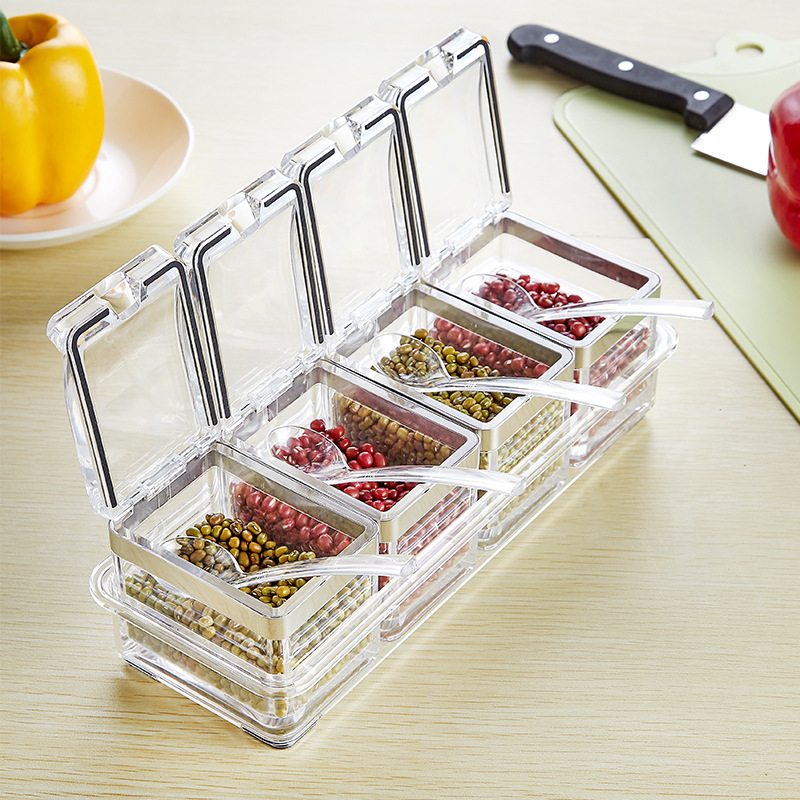 Each group has four small boxes. It can store four different spices.