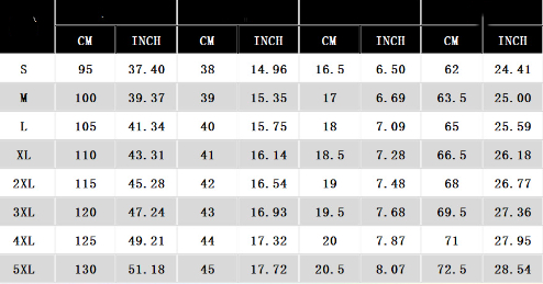 Size: S,M,L,XL,2XL,3XL,4XL,5XL,6XL