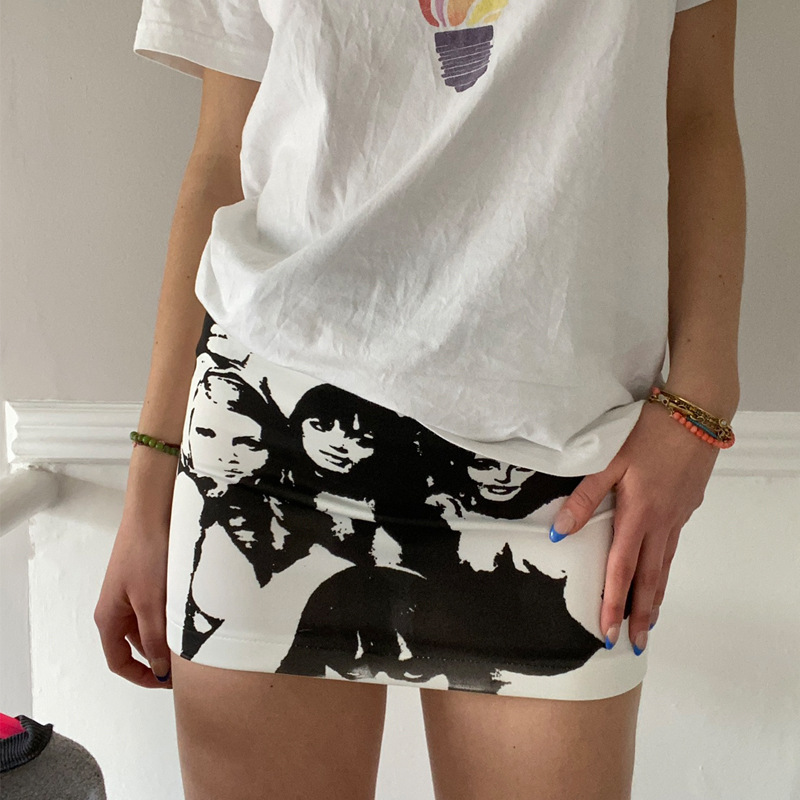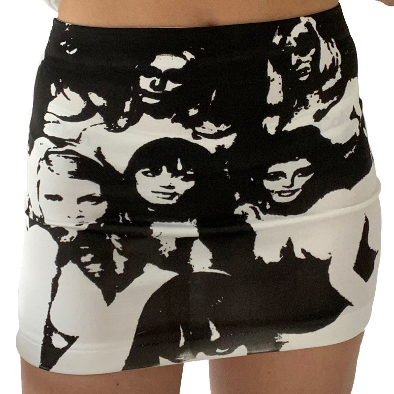 European And American Abstract Portrait Graffiti Printed Short Skirt Girl