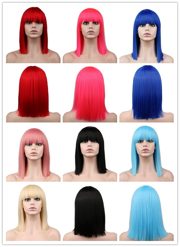 Applicable people, ladies, treatment process, mechanism Wig length Short hair Can be dyed hot Can be dyed Hair material High temperature wire Apply skin tone Any skin tone Apply face type Any face type Style party effect net red, live Wig hairstyle short straight hair cosmetic features party color red, purple, black, rose, royal blue, sky blue, gold, pink