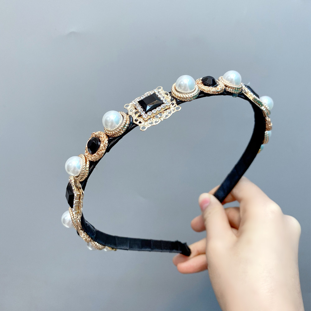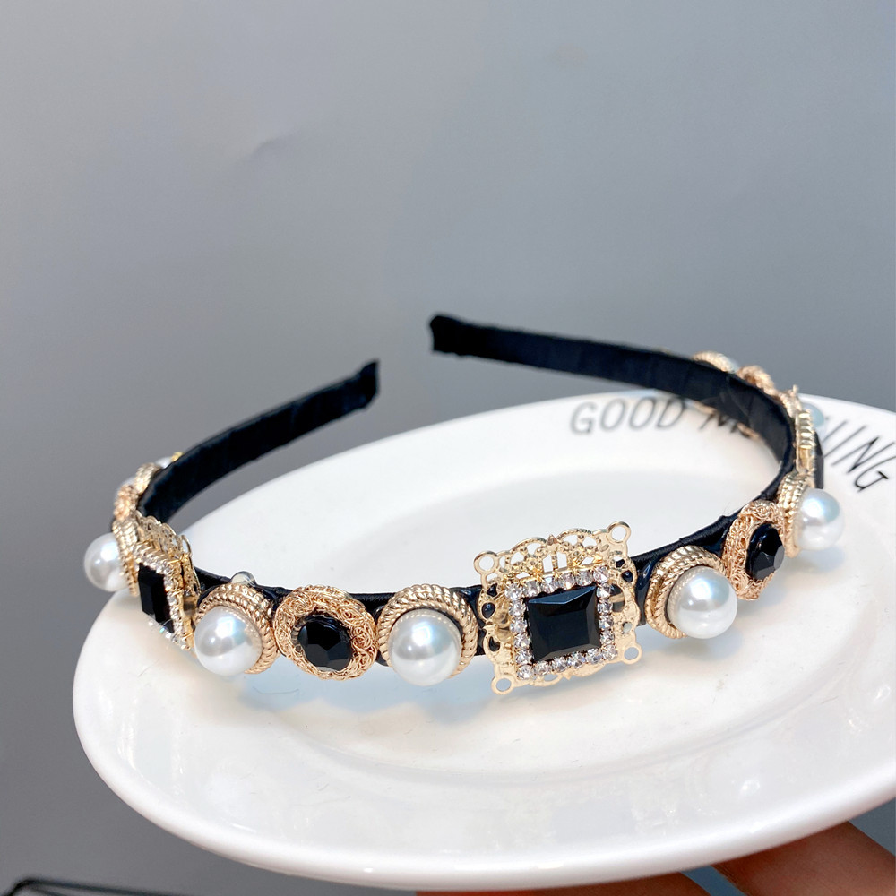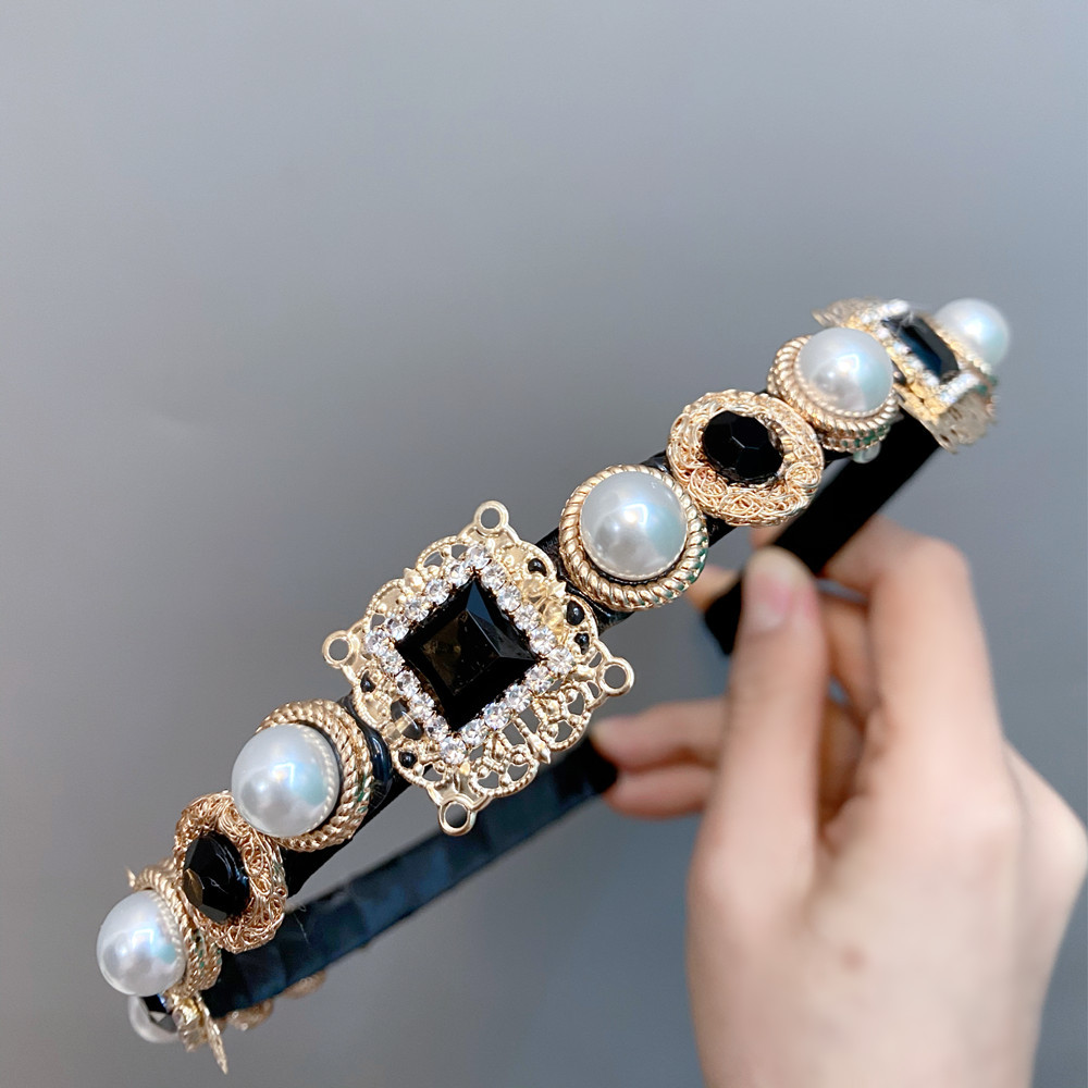 European And American Baroque Headband With Pearls And Diamonds
