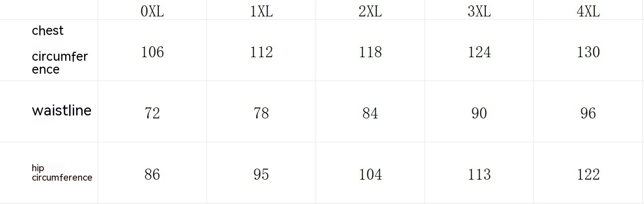Size: 0XL,1XL,2XL,3XL,4XL