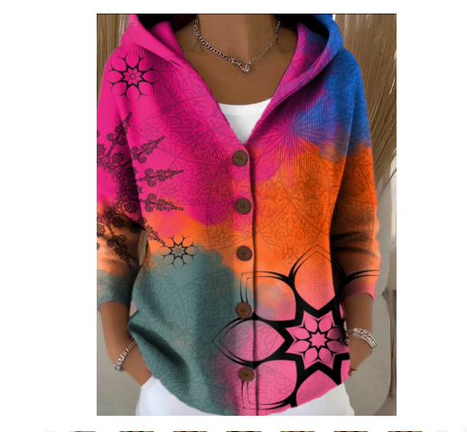 European And American Button-down Knit Hooded Cardigan Sweatshirt Jacket