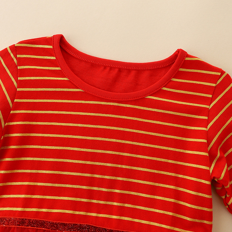 European And American Christmas Elk Mesh Children Shirt Round Neck Cute Princess Dress