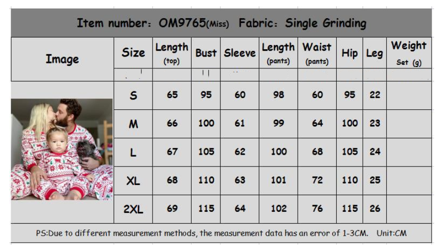 Polyester parent-child suit x1 (ladies' top x1, women's pants x1, men's top x1, men's trousers x1, children's top x1, and children's trousers x1)