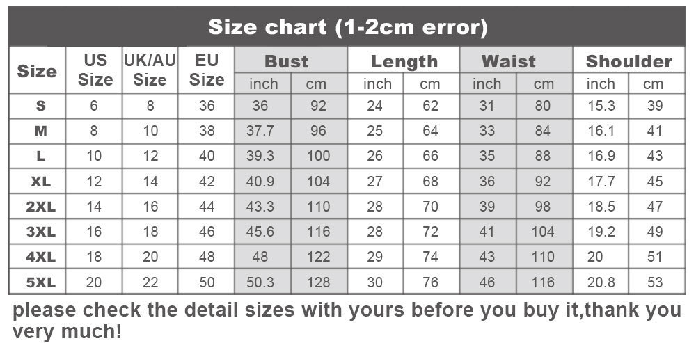 1. Asian sizes are 1 to 2 sizes smaller than European and American people. Choose the larger size if your size between two sizes. Please allow 2-3cm differences due to manual measurement. 2. Please check the size chart carefully before you buy the item, if you don't know how to choose size, please contact our customer service. 3.As you know, the different computers display colors differently, the color of the actual item may vary slightly from the following images.