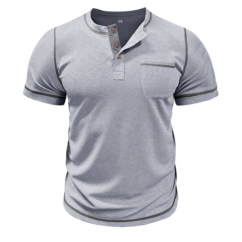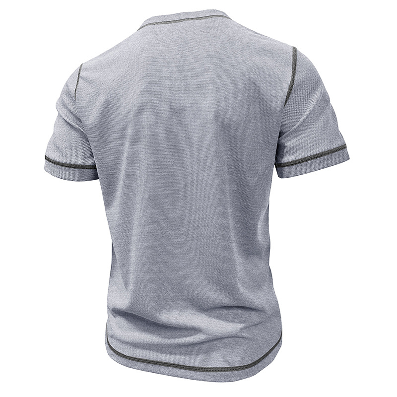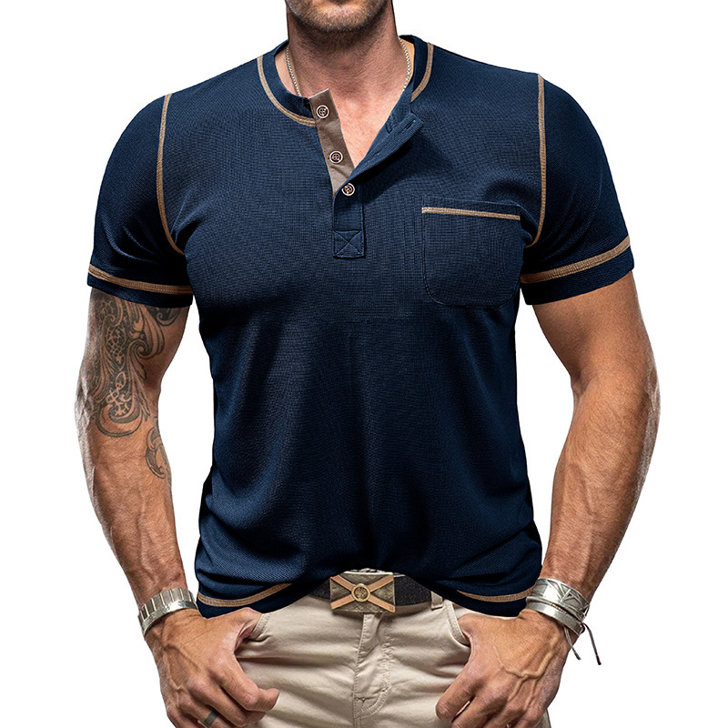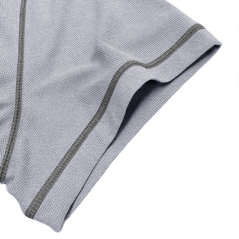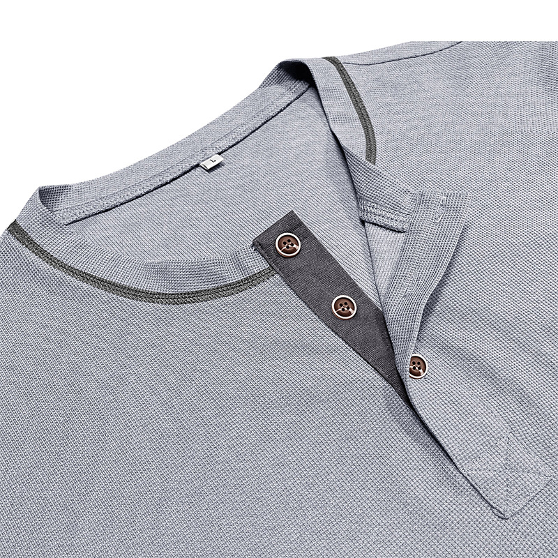European And American Contrast Color Round Neck Waffle Henry T-shirt Button Contrast Color Bright Line Bottoming Shirt