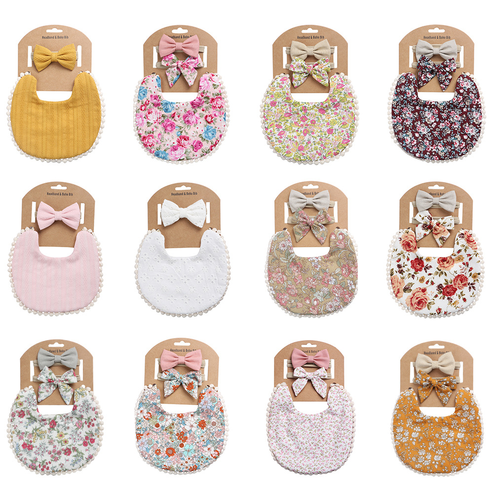 European And American Cotton Cute Floral Baby Anti-Spitting Milk Saliva Towel Newborn Printing Bib Headband Set