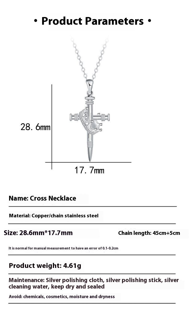 European And American Crown Cross Necklace Female Light Luxury Minority High Sense Ornament