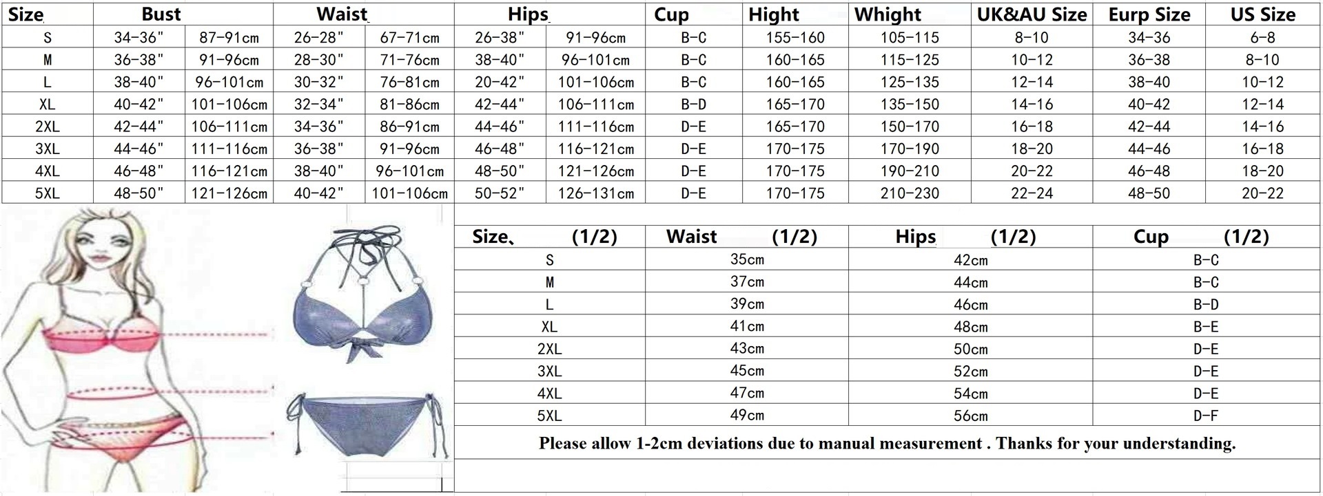 1. Asian sizes are 1 to 2 sizes smaller than European and American people. Choose the larger size if your size between two sizes. Please allow 2-3cm differences due to manual measurement. 2. Please check the size chart carefully before you buy the item, if you don't know how to choose size, please contact our customer service. 3.As you know, the different computers display colors differently, the color of the actual item may vary slightly from the following images.