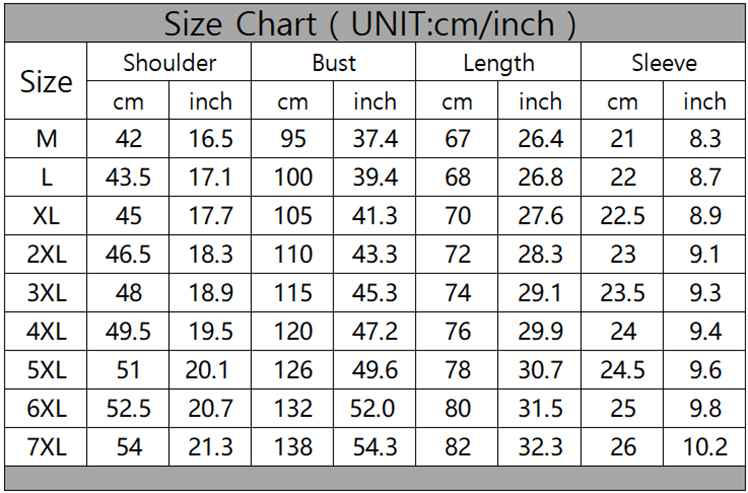 Size: M,L,XL,2XL,3XL,4XL,5XL,6XL,7XL