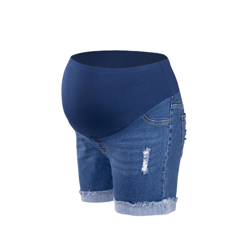 European And American Fashion Belly Supporting Pregnant Women Simple Ripped Denim Shorts