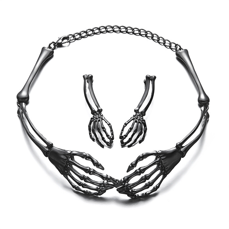 Color: Silver Ghost hand necklace & earrings kit, black ghost hand necklace & earrings kit, skull army necklace